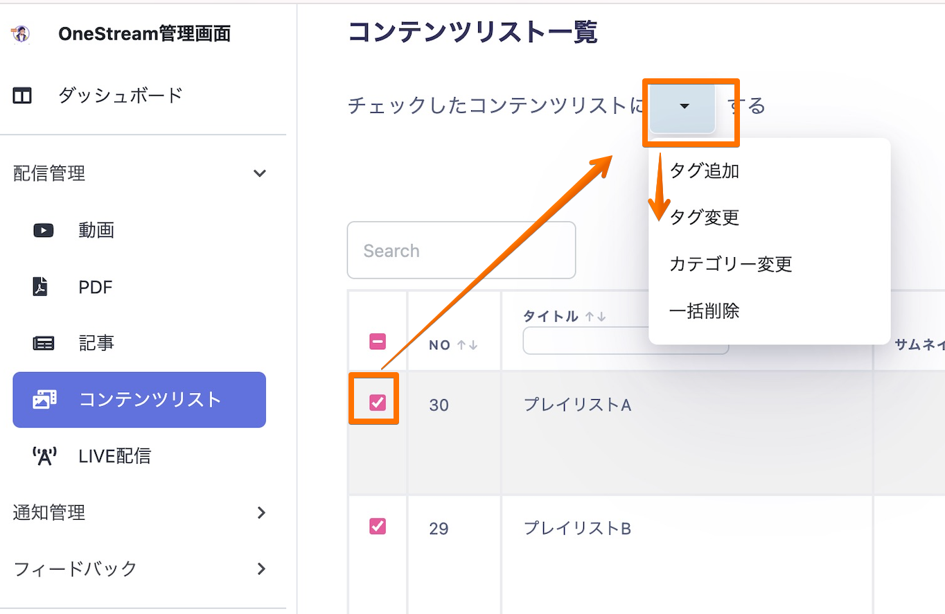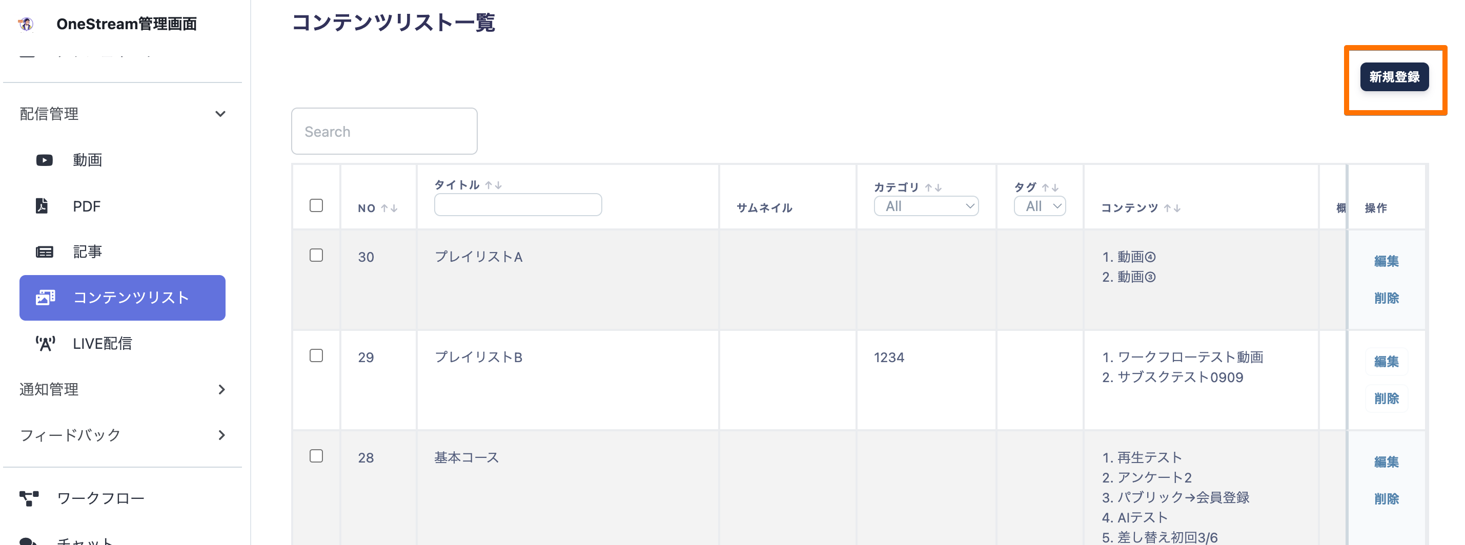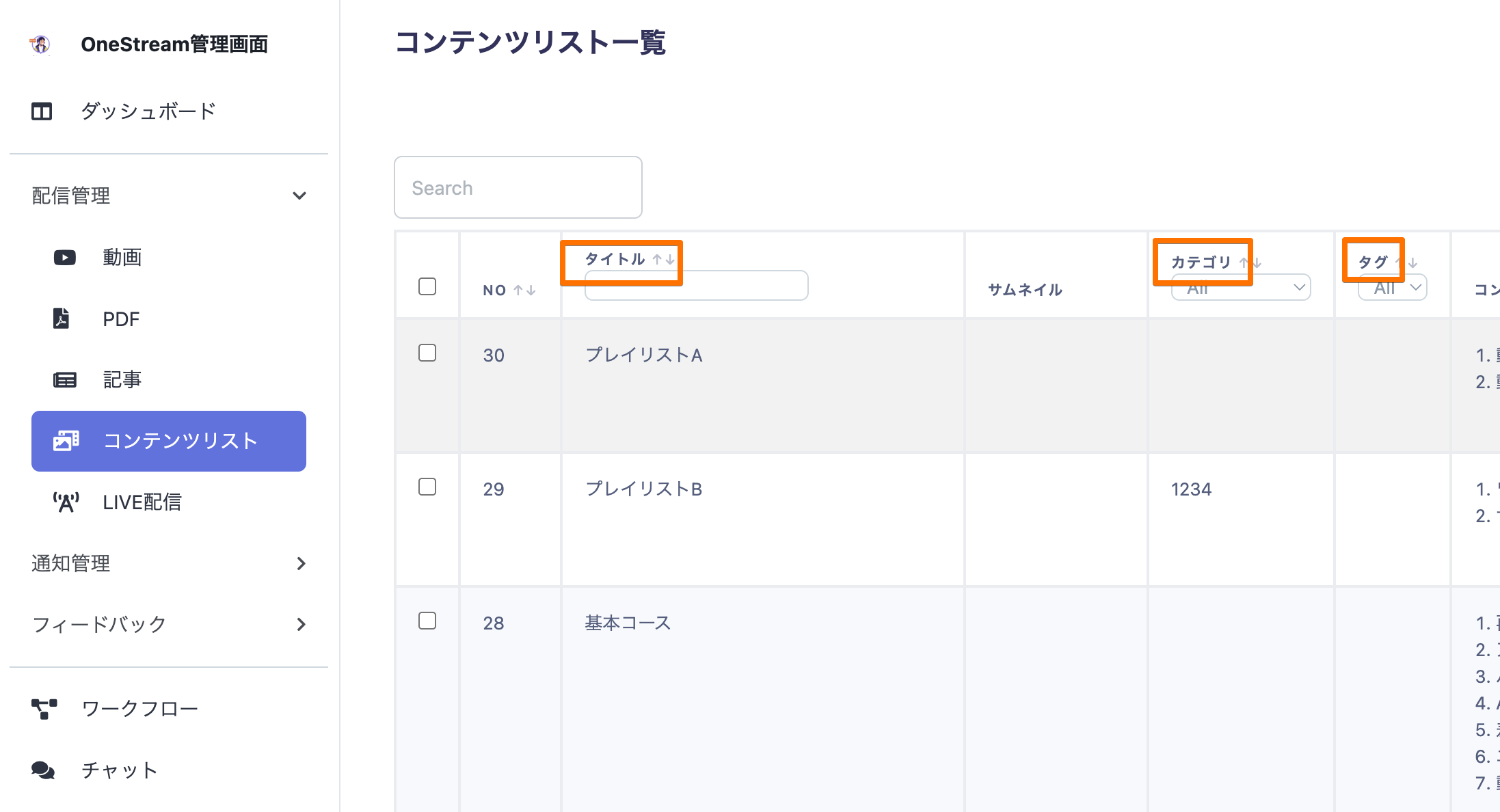 コンテンツリスト一覧ではタイトルやカテゴリ、タグなどにフィルターをかけて確認いただくことが可能です