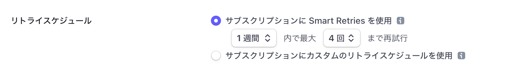 Stripeの下記の設定のスケジュールに応じてリトライされます。
