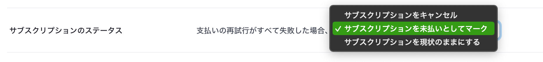 決済が失敗した際、Stripeの自動リトライ期間(期日超過)では、会員が変更したクレジットカードで決済されますが、一度「未払い」としてマークされると、自動請求が停止されます。