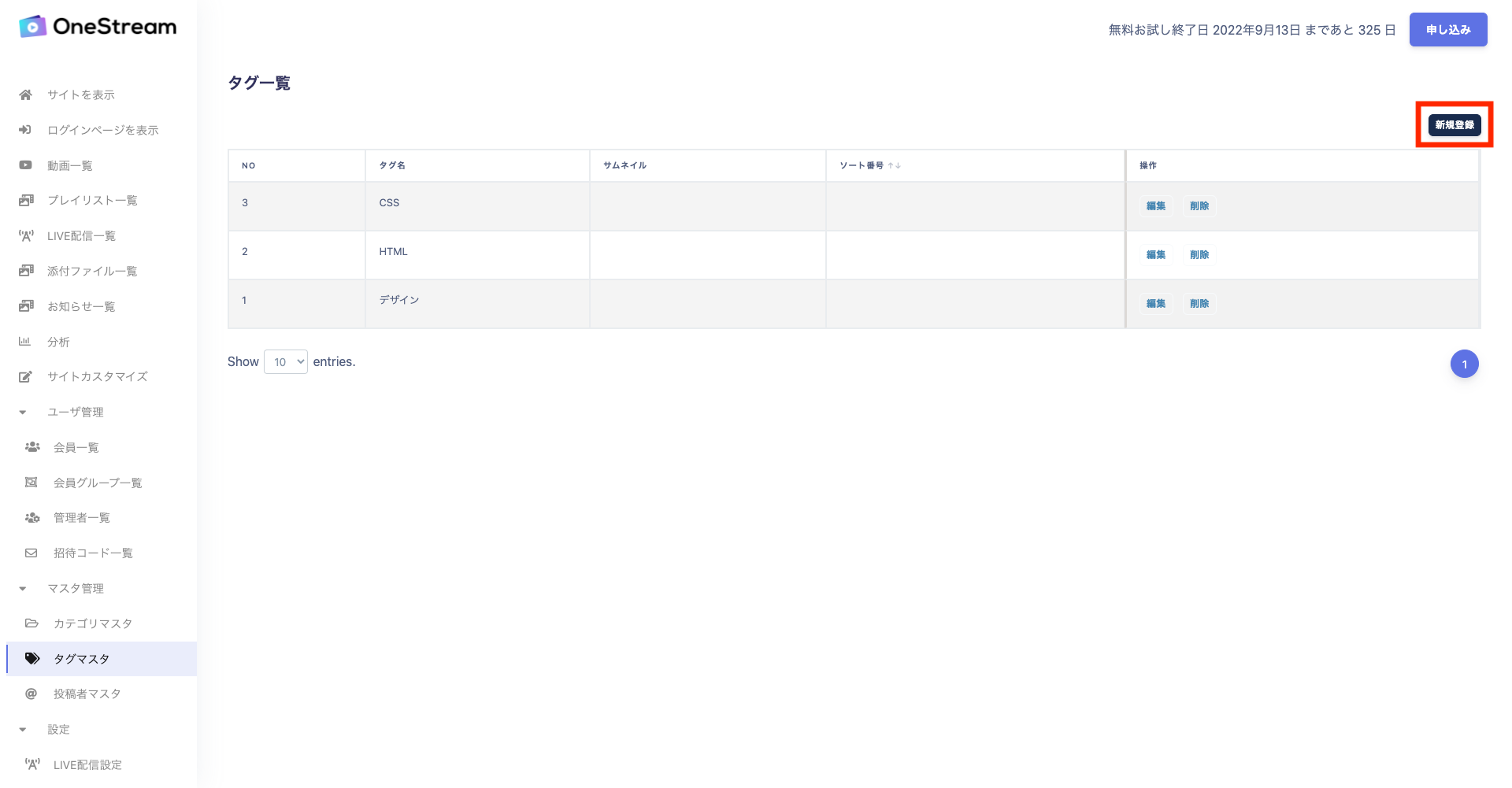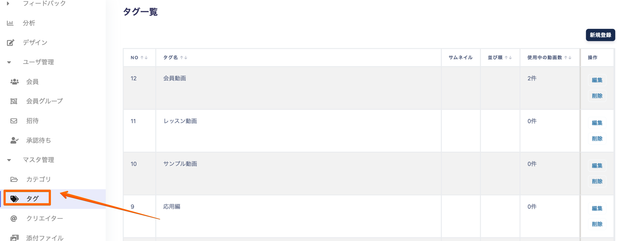 Q:マスタ管理から動画にタグを紐付けることはできますか?
