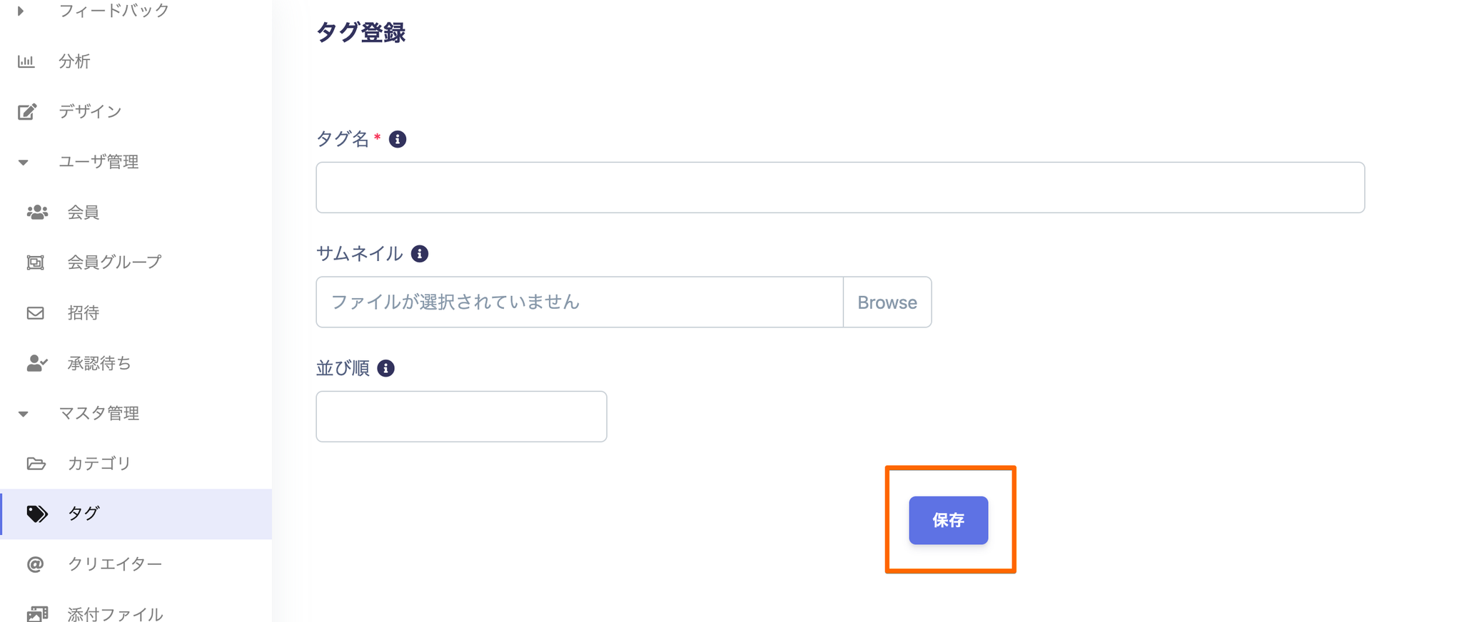 •タグ名(入力必須項目!):任意のタグ名を入力してください