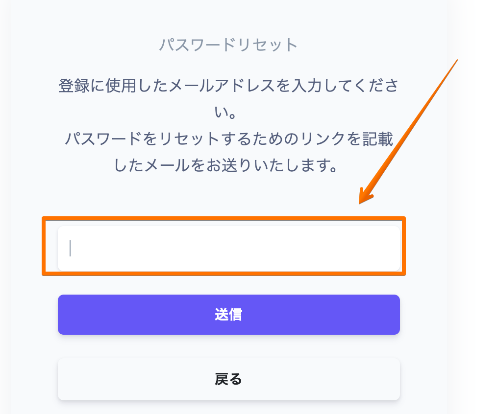 入力したメールアドレス宛に、パスワードリセット用のURLが送信されます。※メールが届かない場合は、迷惑メールフォルダもご確認ください