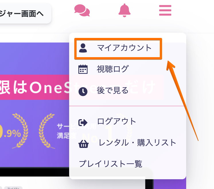 表示されたメニューから「マイアカウント」をクリックします