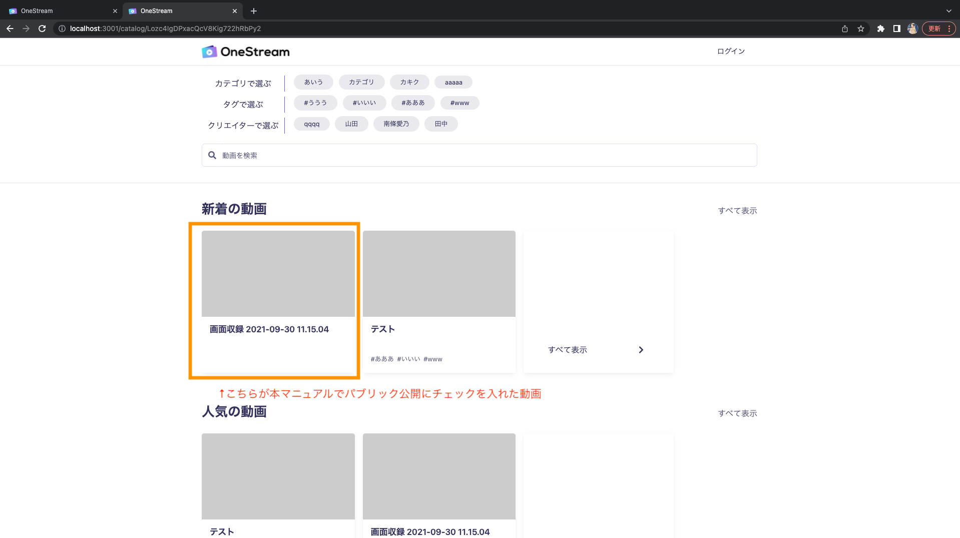 •パブリック公開にチェックを入れている動画が一覧に表示されていることを確認してください