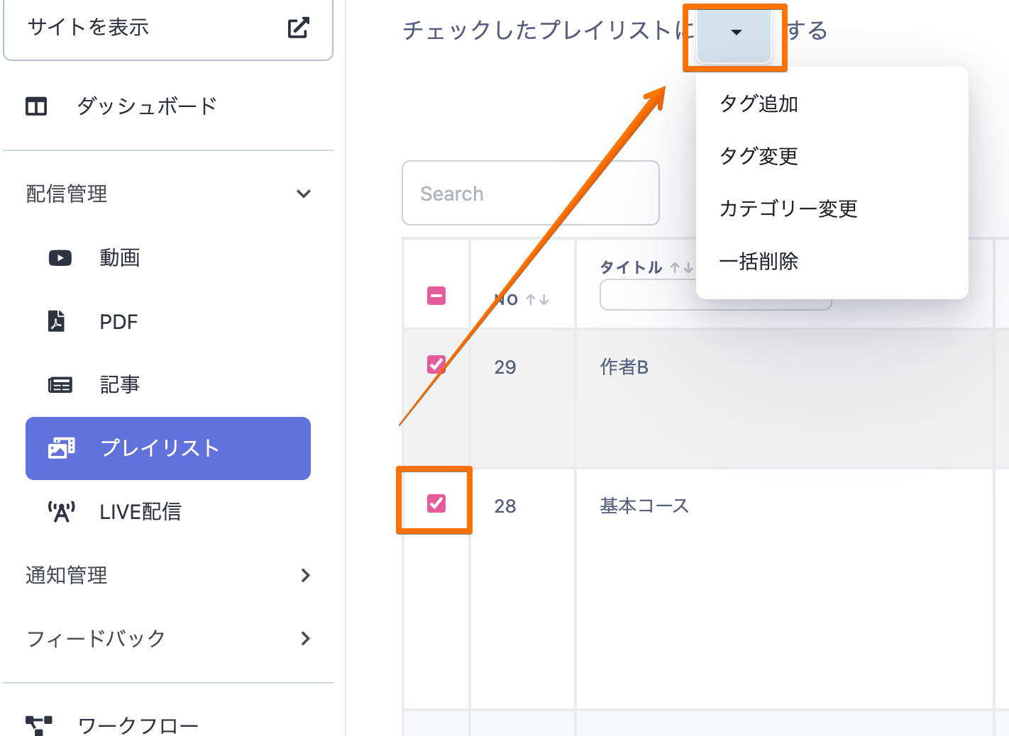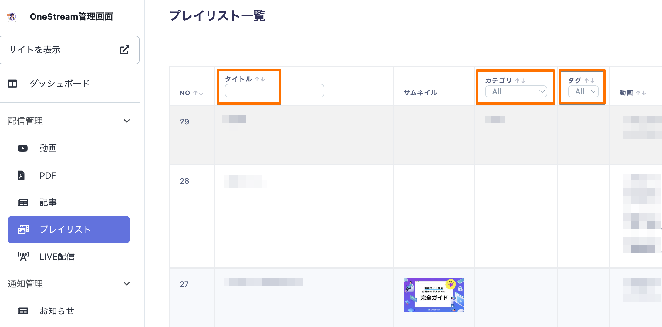 プレイリスト一覧ではタイトルやカテゴリ、タグなどにフィルターをかけて確認いただくことが可能です