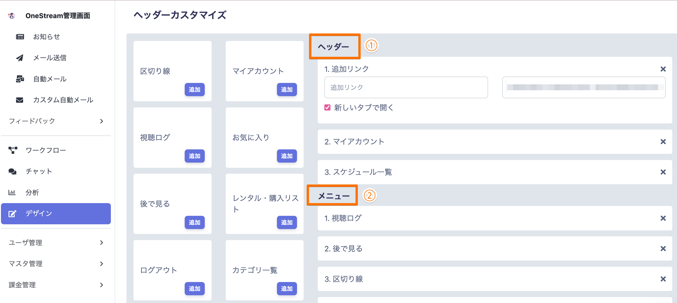 表示順の変更や、ヘッダー/メニューへの配置切り替えも柔軟に行うことができます。