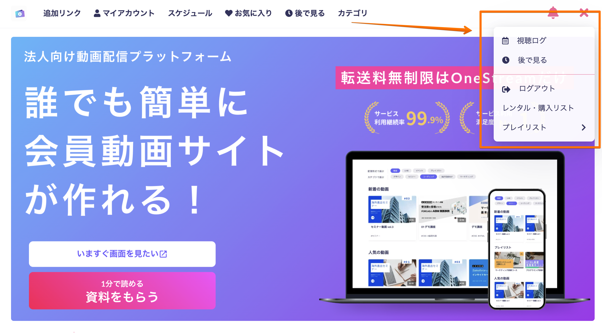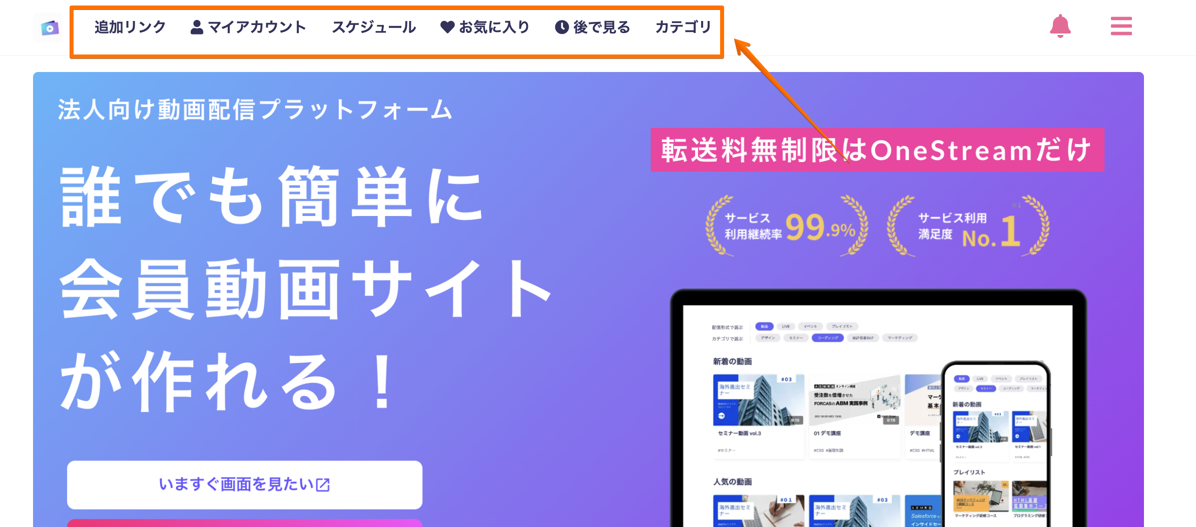 ヘッダーカスタマイズでは、ユーザーサイト上に表示されるメニュー項目を任意に編集できます。