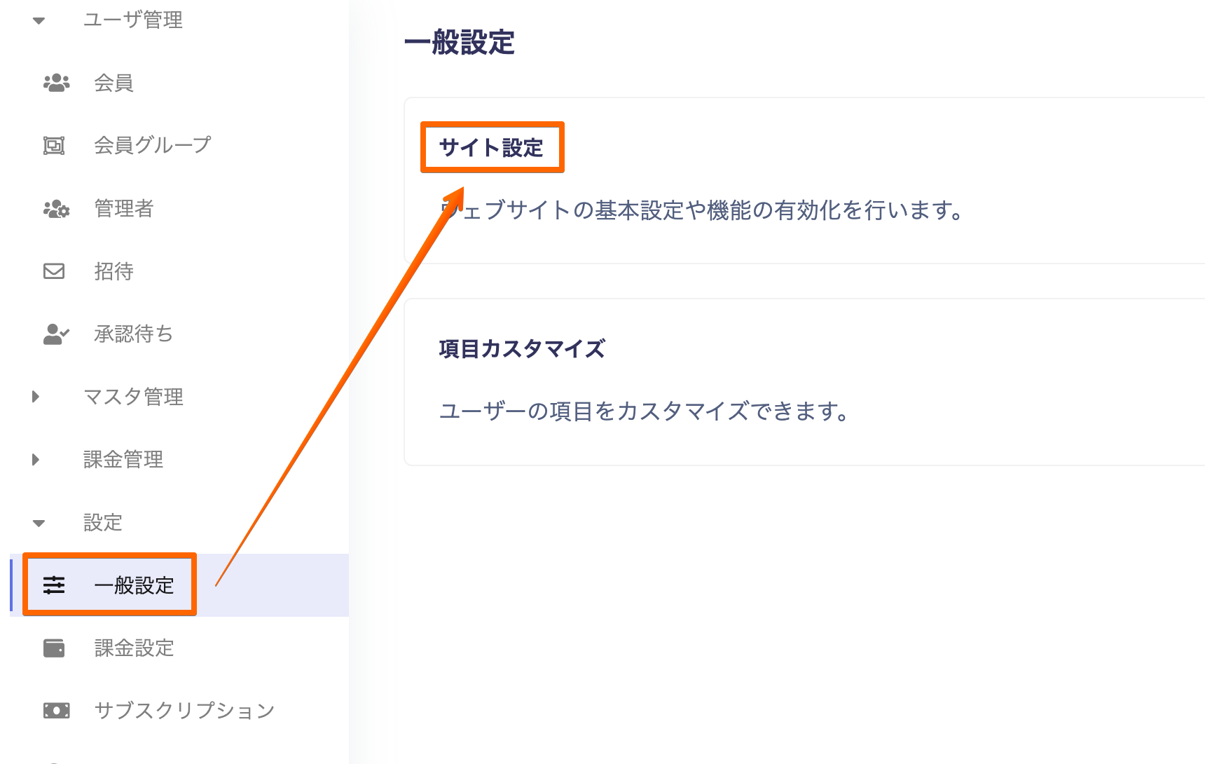 設定→一般設定→サイト設定