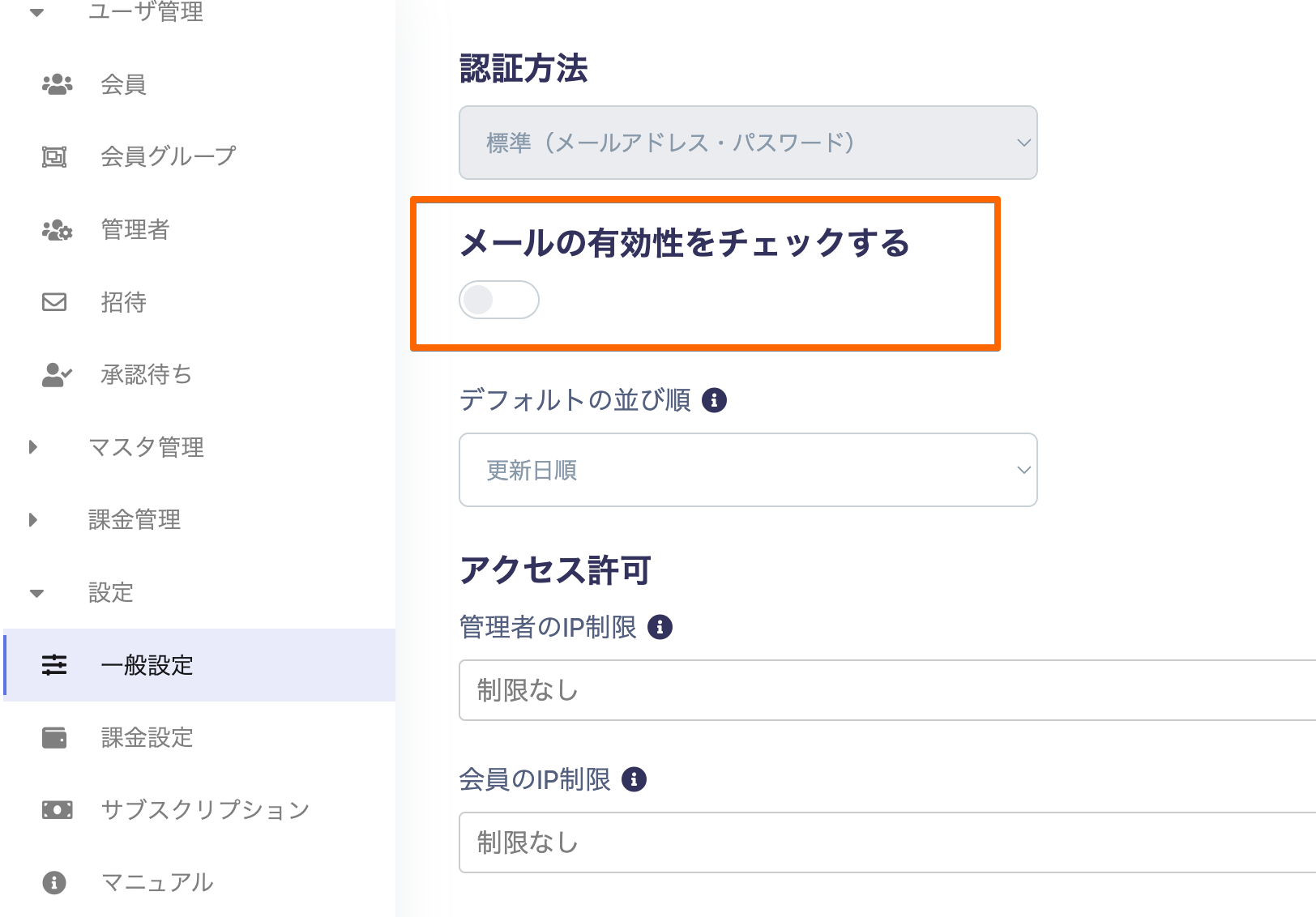 メールの有効性をチェックするより設定ください