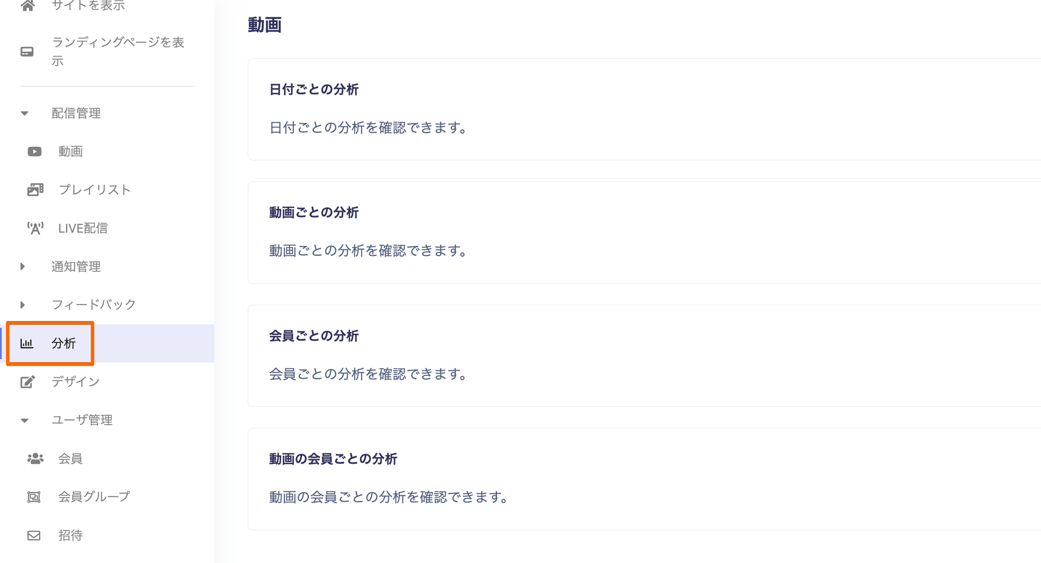 分析からは、動画ごとの日付ごとのログも確認できます