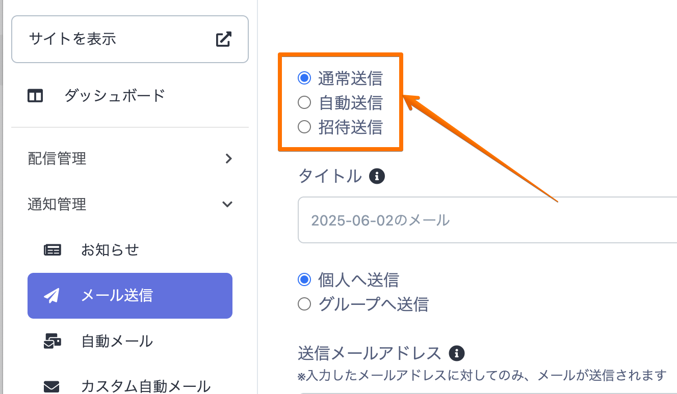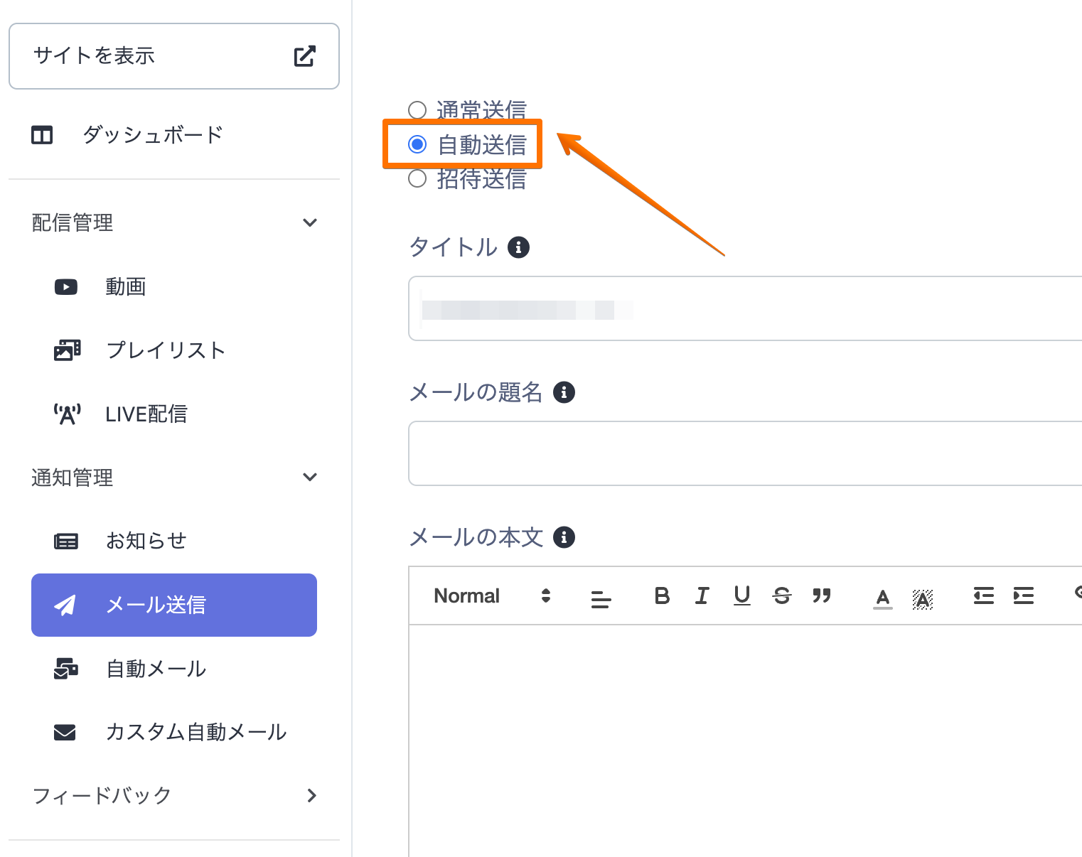 テンプレートは先に通知管理→メール送信にて作成する必要があります