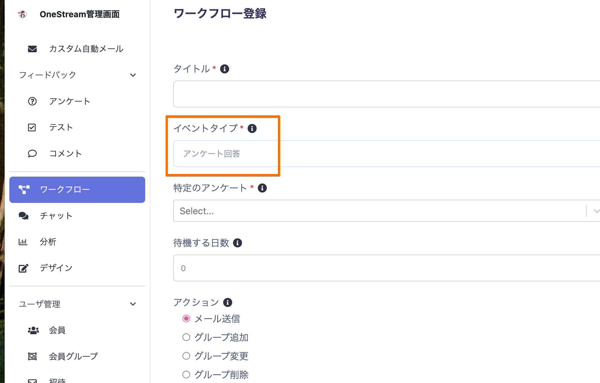 例:2025/08/15 AM11:00に決済され、待機日数3日のワークフローが動作した場合、そのワークフローのアクションが実行されるのは3日後の 2025/08/18 AM11:00 となります。