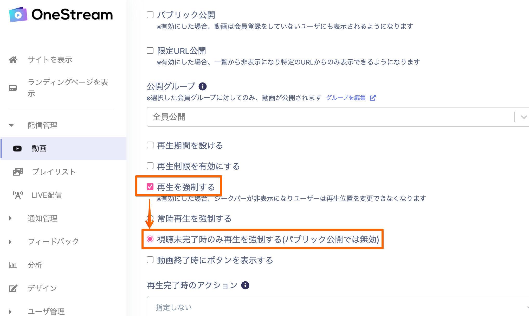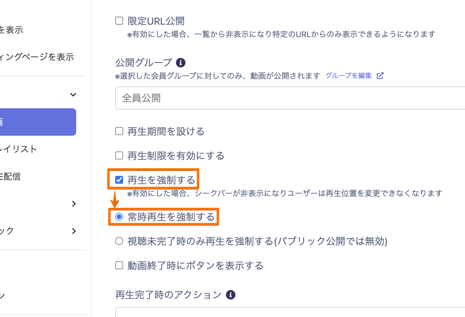 早送りや巻き戻しができないように再生を強制するよう設定することが可能です。