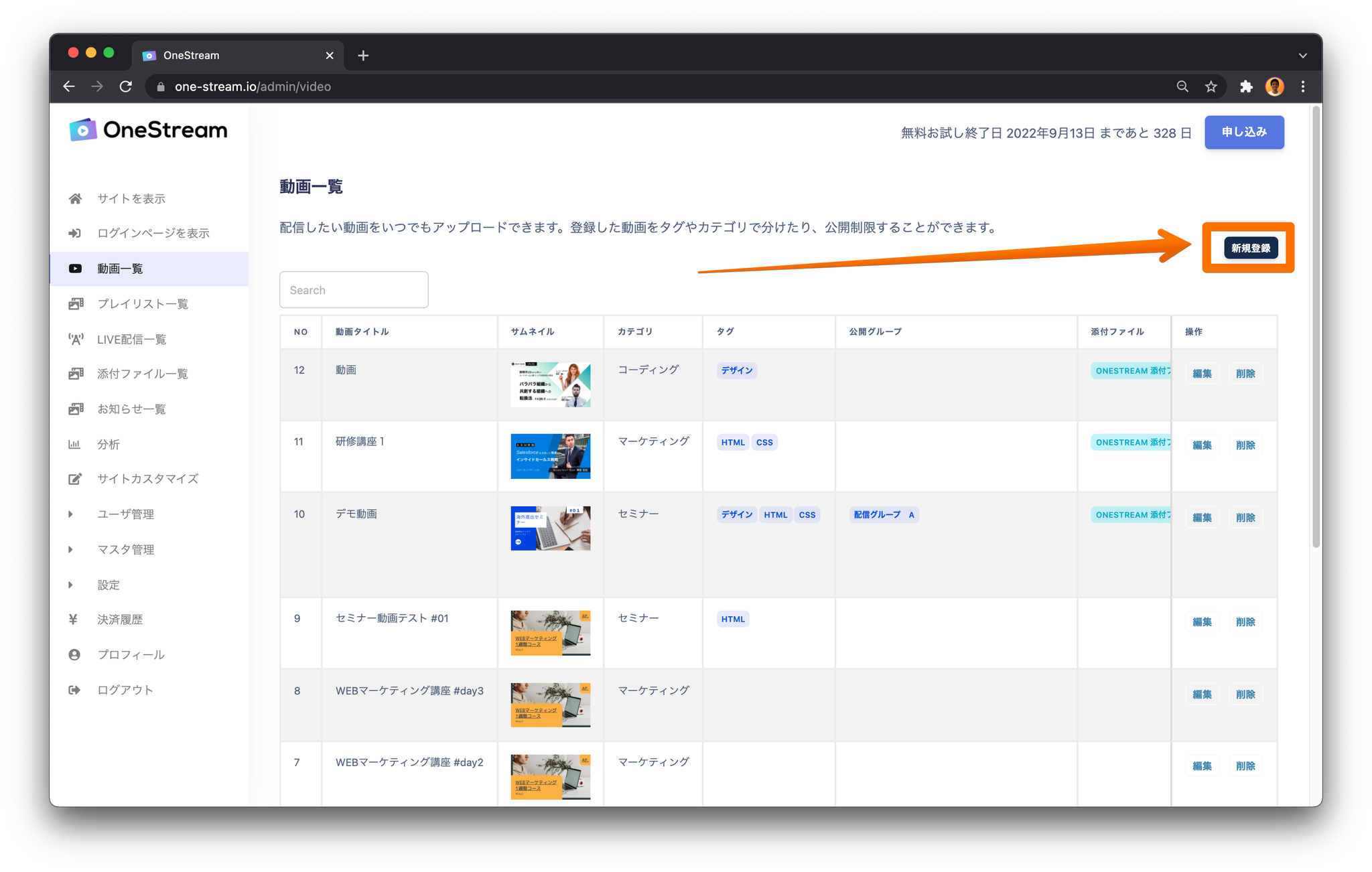 ▼期限公開:設定した公開日〜公開期限までの間のみ会員に対して動画が公開されます