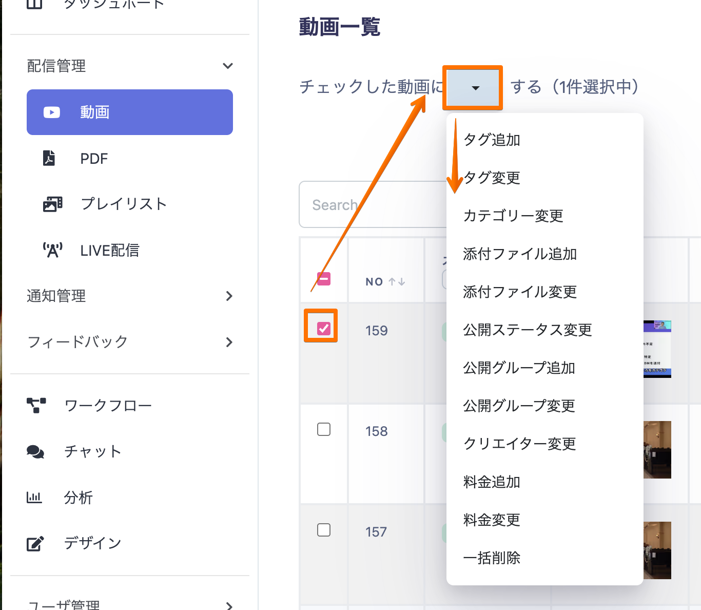 A:該当の動画にチェックを入れて頂き、下記の流れで可能です