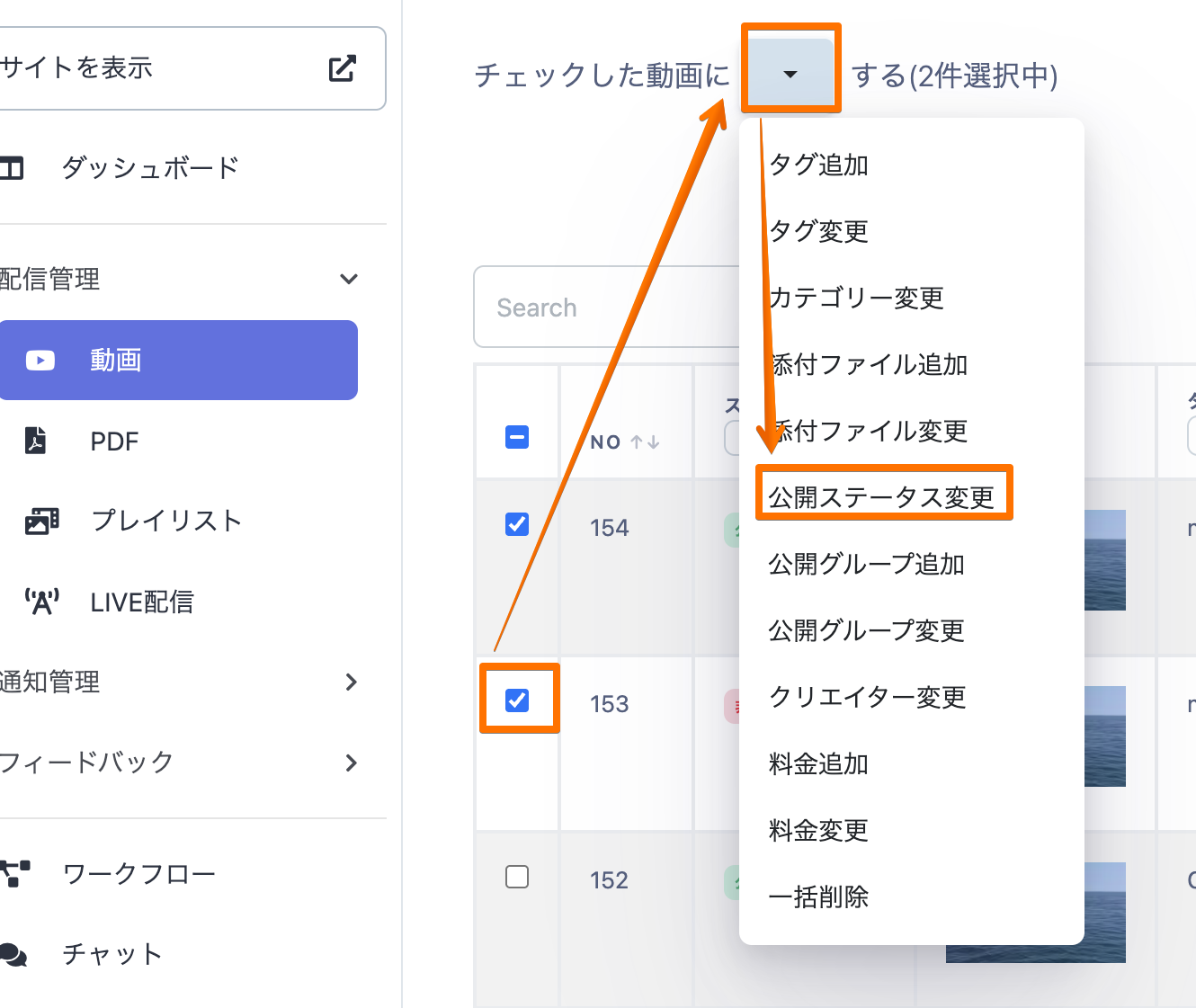 A:チェックボックスを選択することで、まとめて公開ステータスを変更できます。