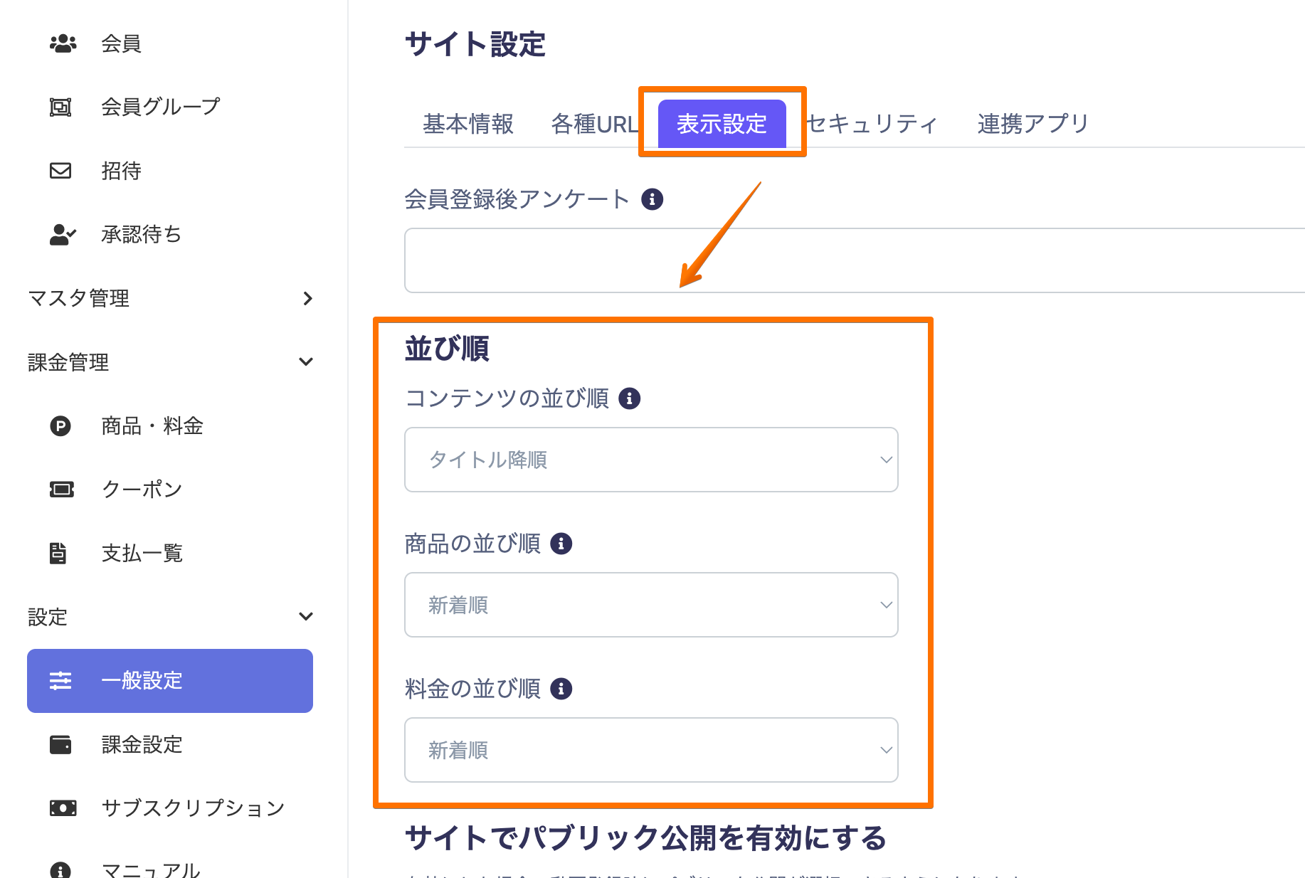 設定→一般設定→サイト設定→表示設定