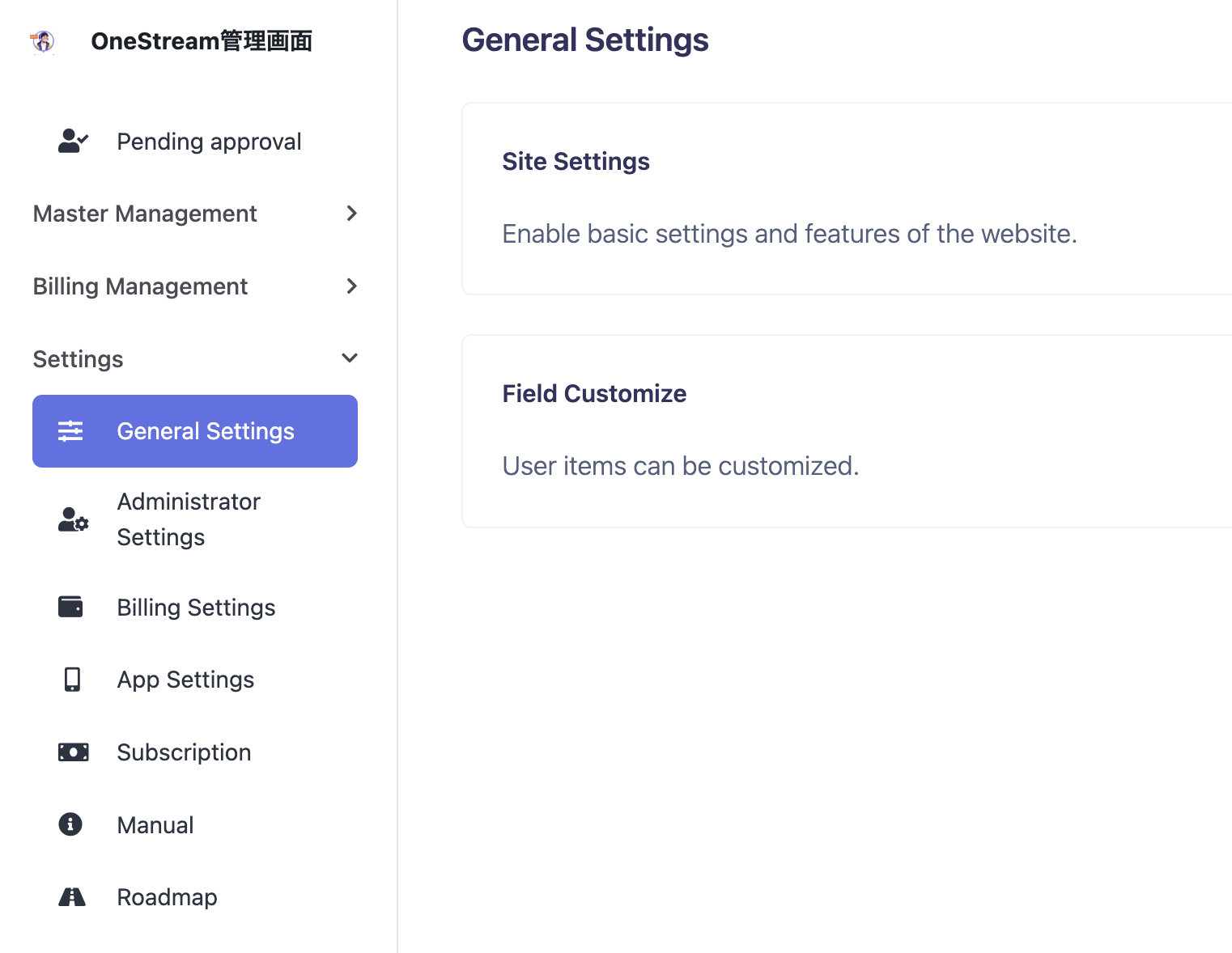 One Streamでは、サイトの表示言語を 日本語 または 英語 に切り替えることができます。