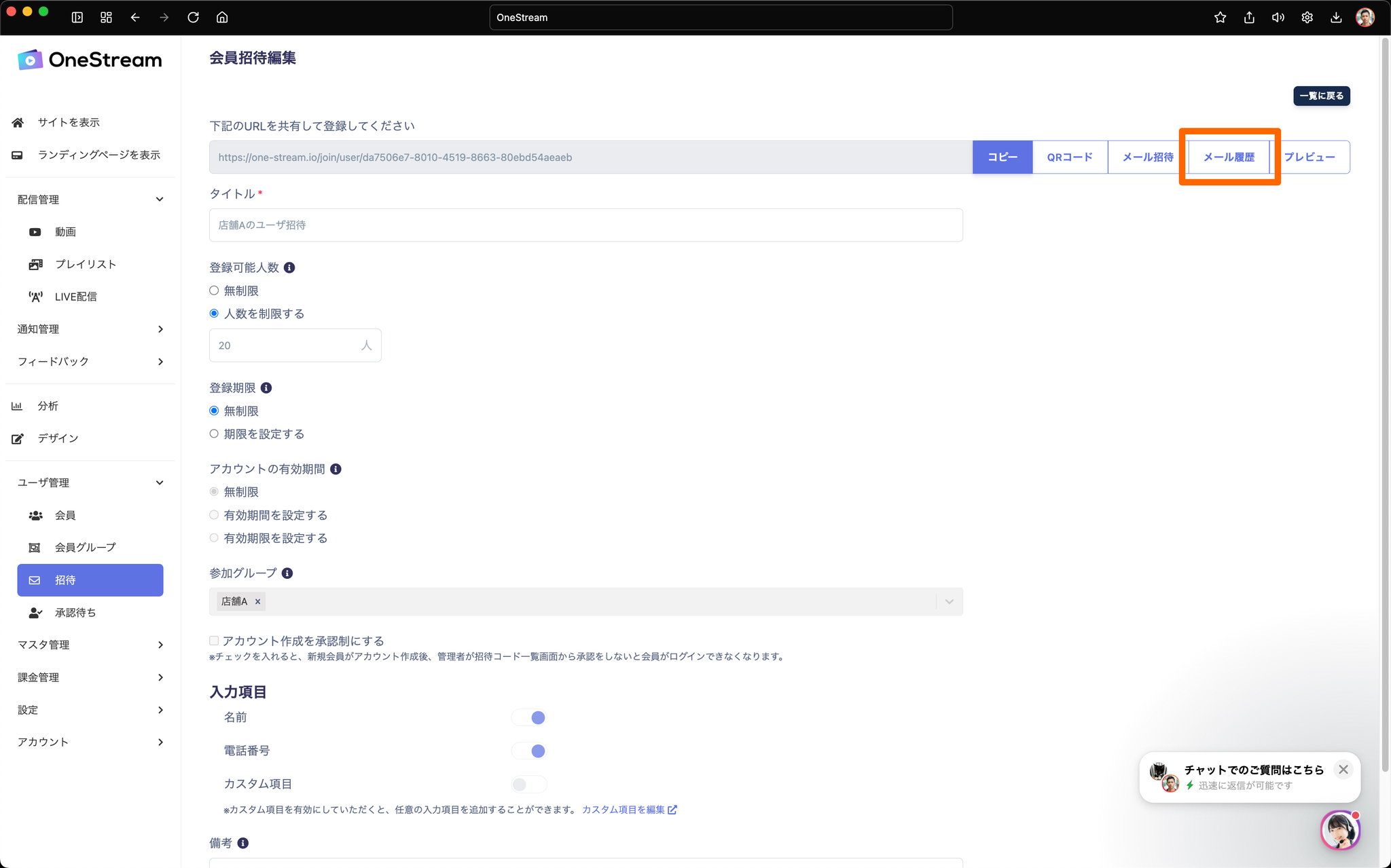 招待メール送信履歴の確認動線が変更されます