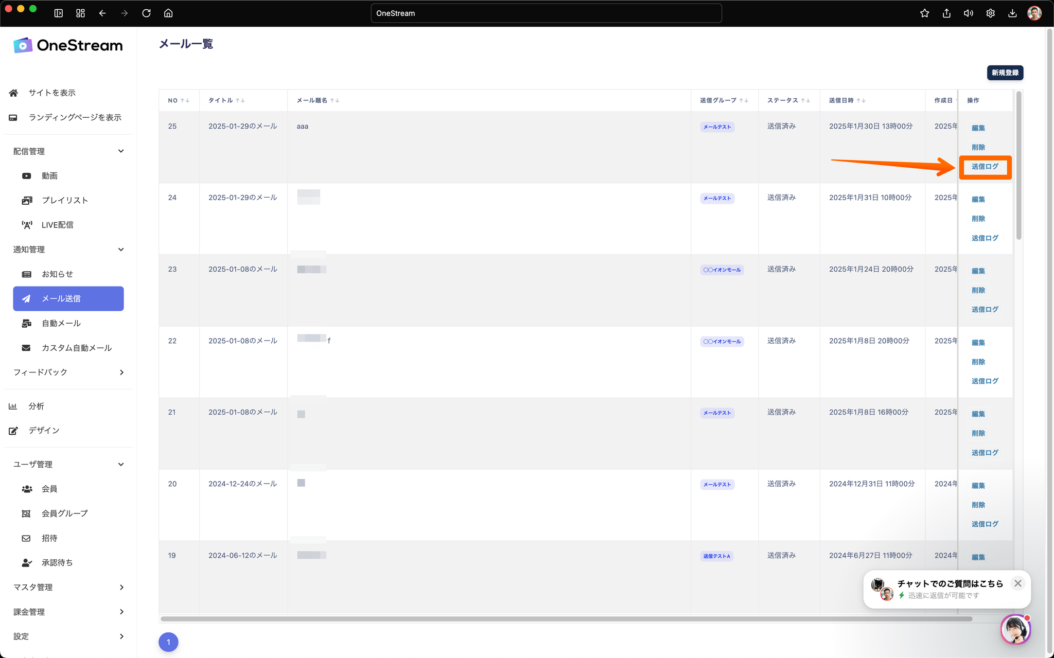 招待メール送信履歴の確認動線が下記に変更されます。
