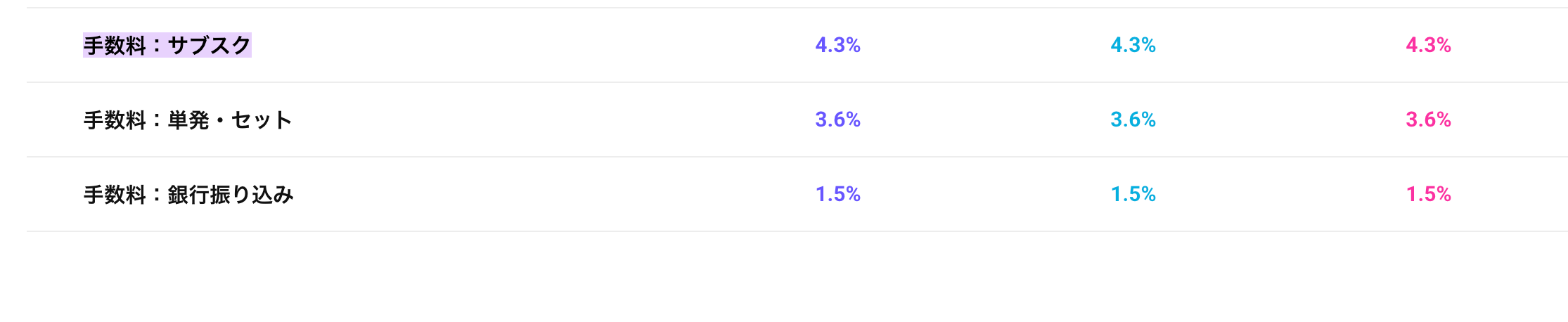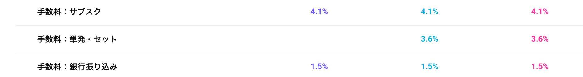 クレジットカード手数料は表のとおりです。