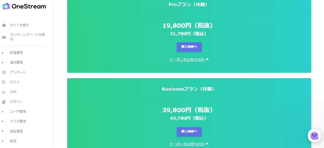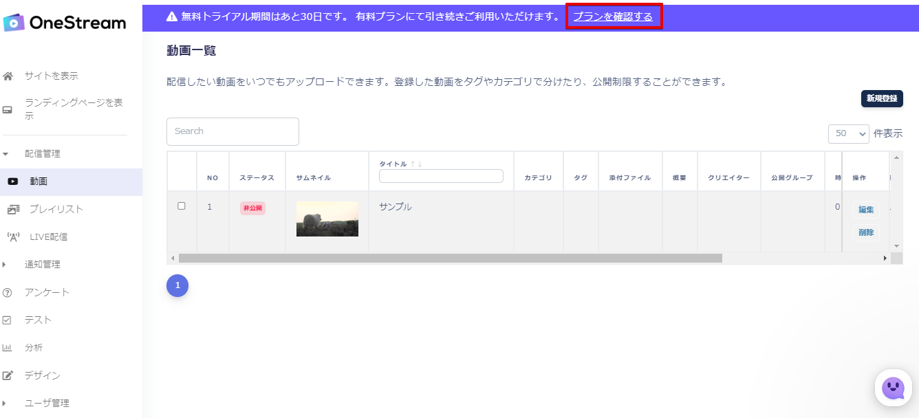管理画面上の【プランを確認する】からお申込みすることができます。