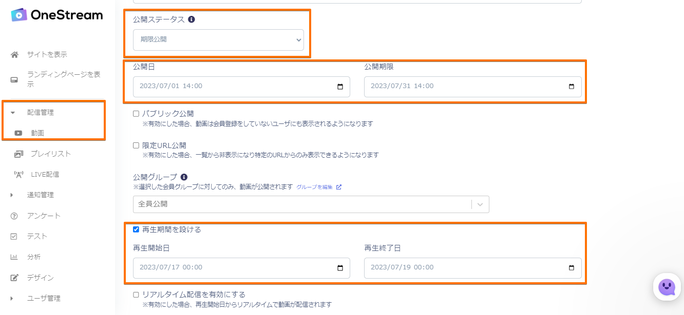 上記の画像は7月1日14:00~7月31日 14:00までしか動画が再生できない設定です。