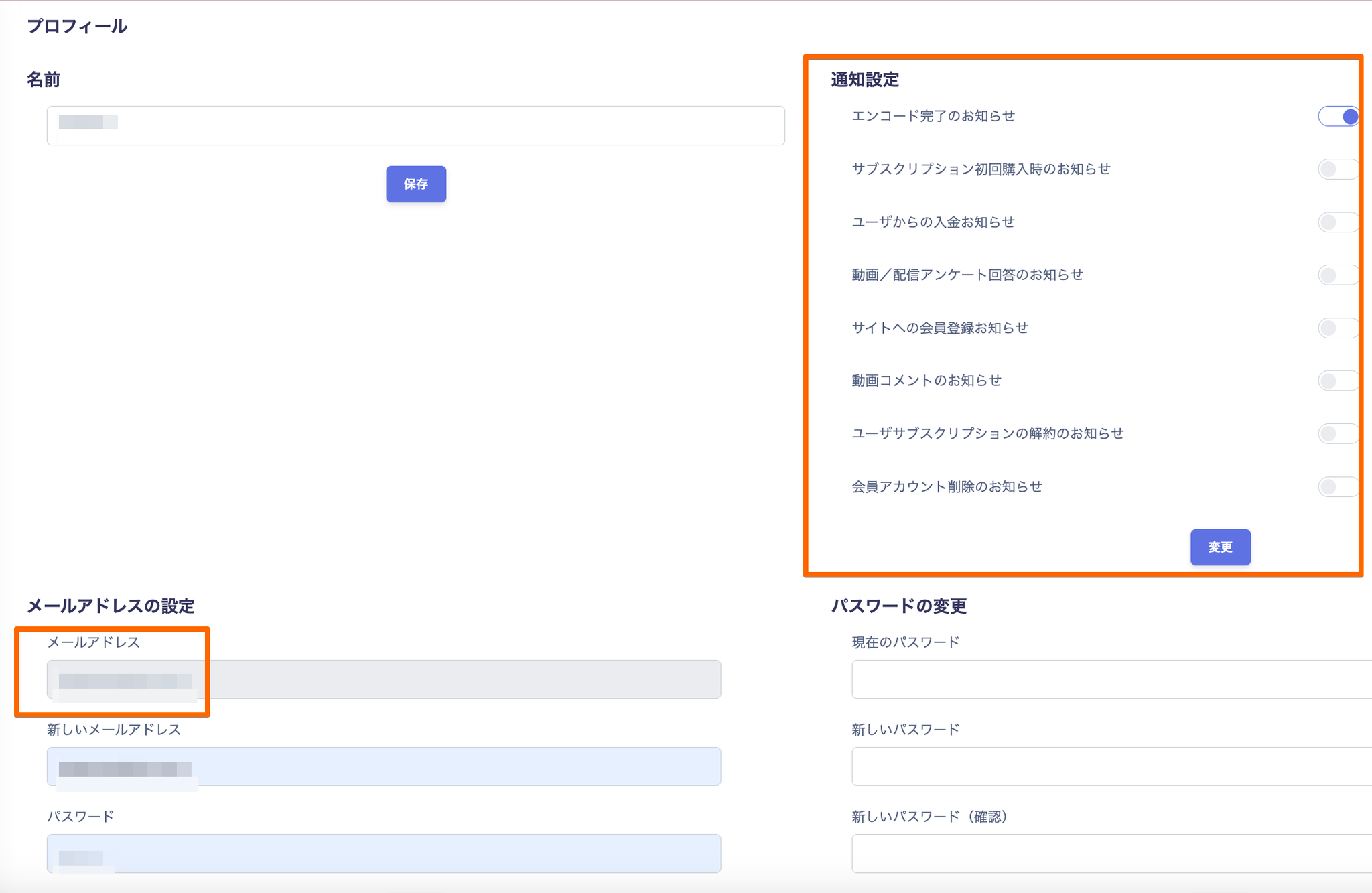 管理者への通知は、メニューのアカウント⇒プロフィール画面で可能です。