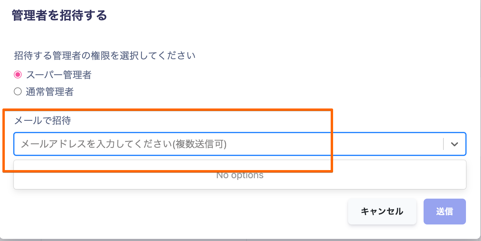 管理者招待サイトを構築する管理者を複数人招待することが可能です1. 設定→管理者設定2. 招待したい管理者のメールアドレスを入力し送信メール送信後、URLが発行されますのでこちらを共有いただくことも可能です3. 下記の様なメールが届きますので「アカウント作成」より管理者用のアカウントを作成ください招待URLの有効期限は24時間となります
