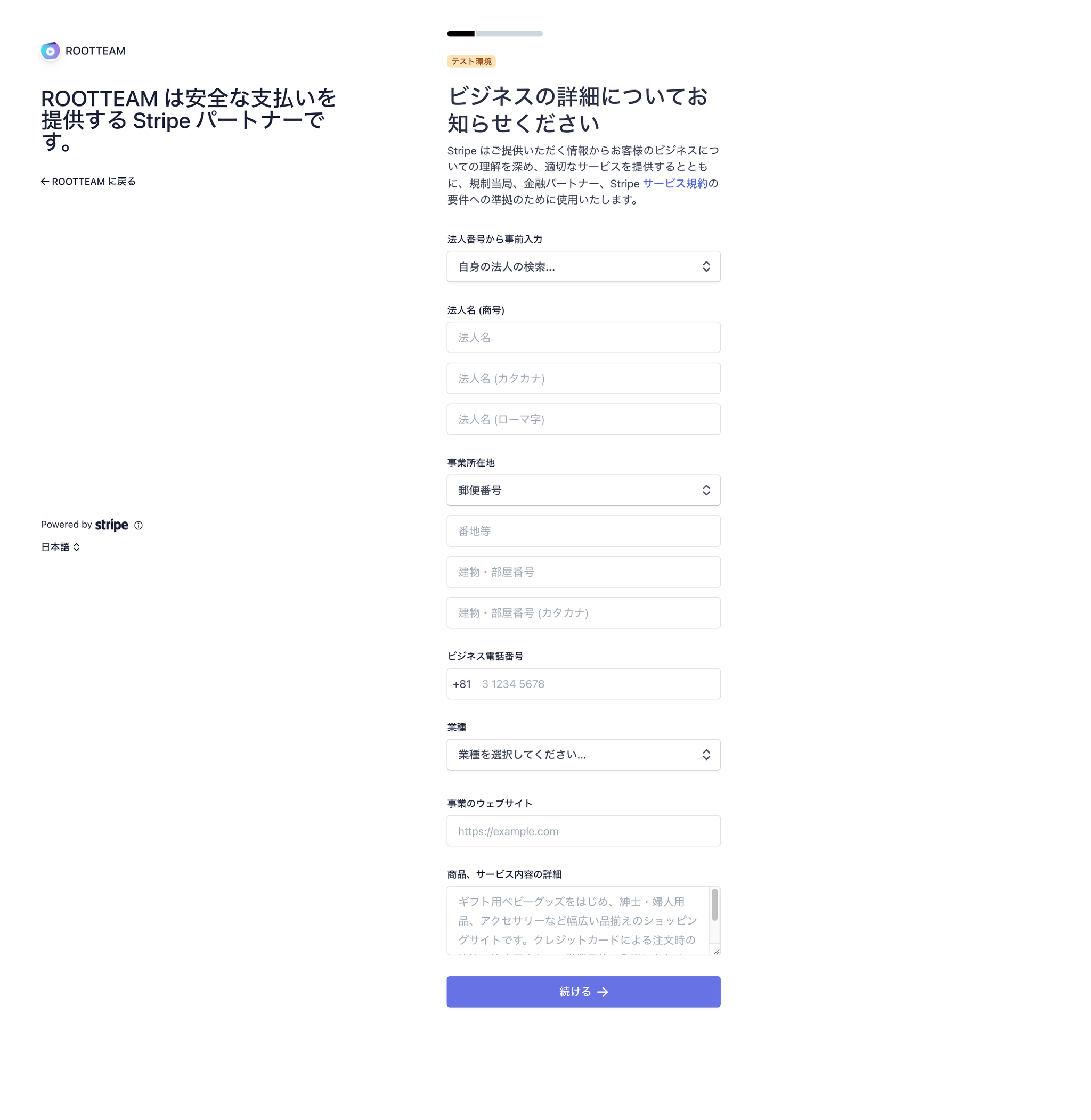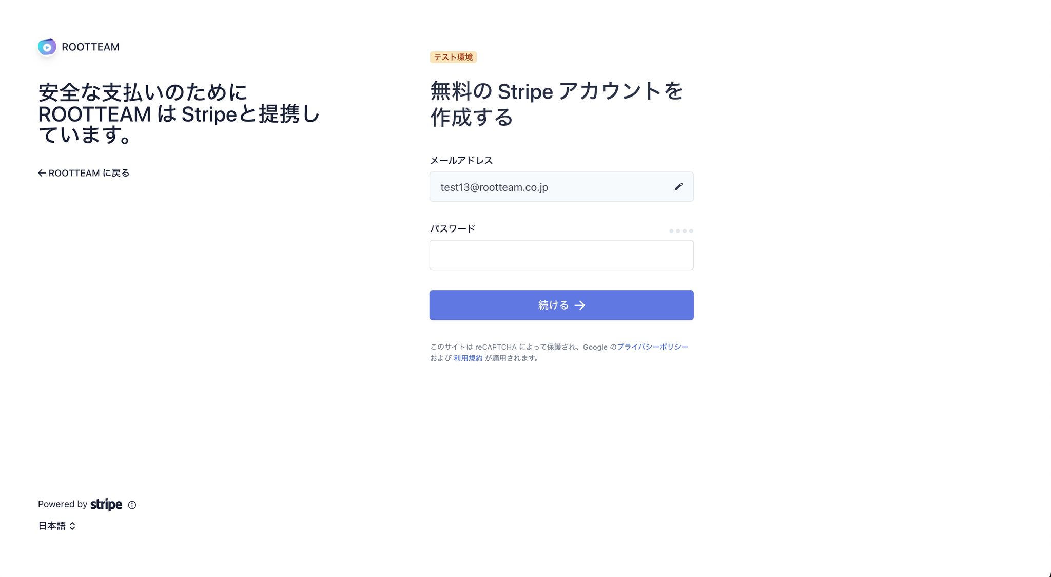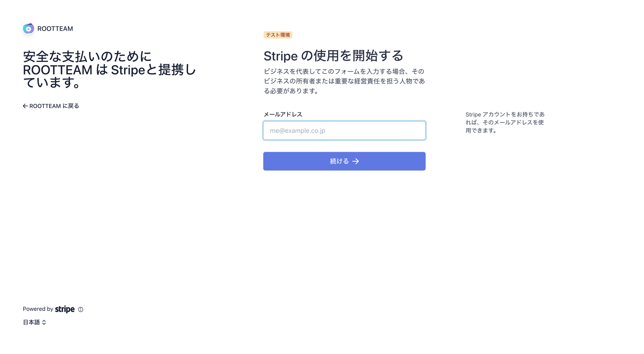 クレジットカード利用登録にあたっては、最初にStripeのアカウント作成を行っていただきます。