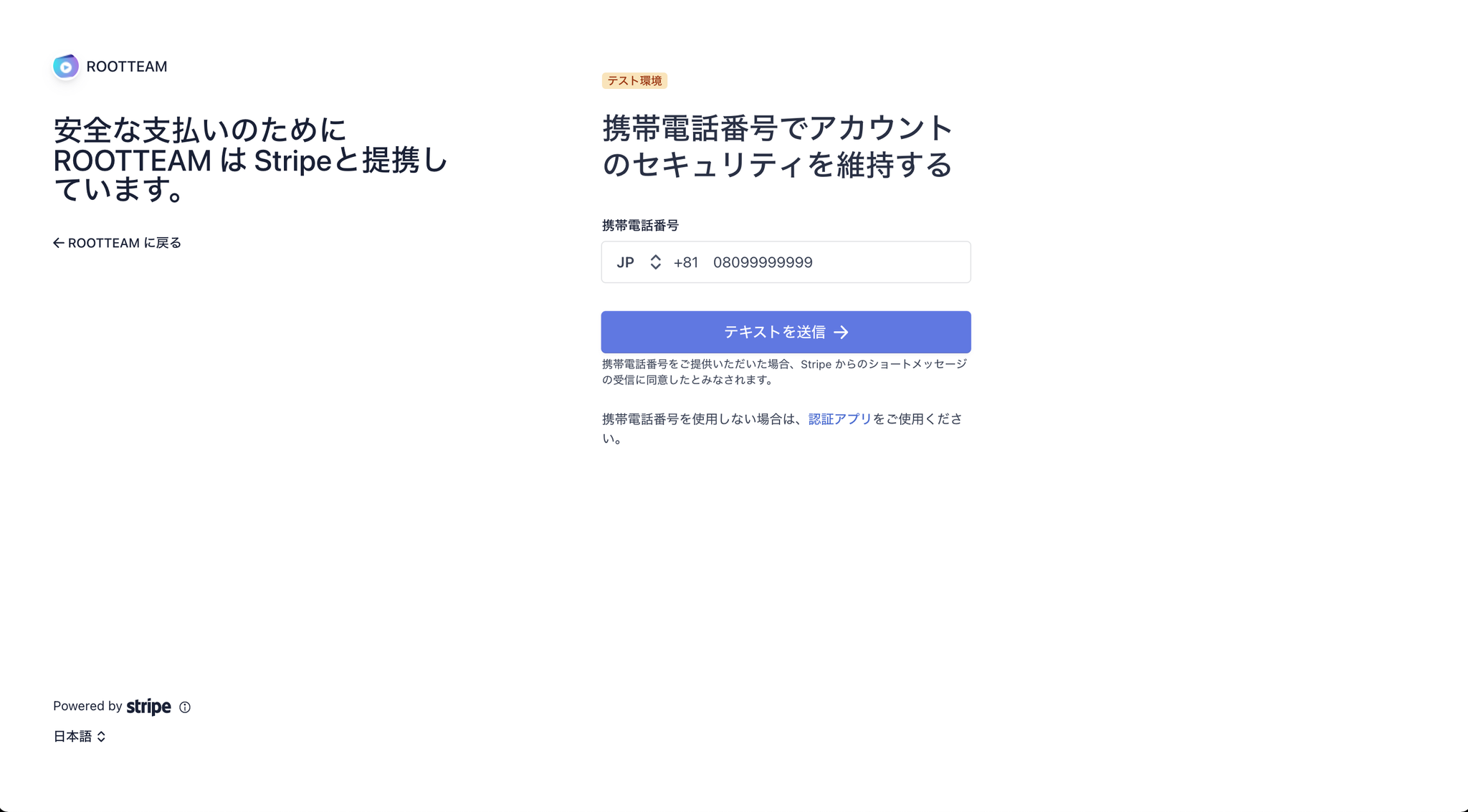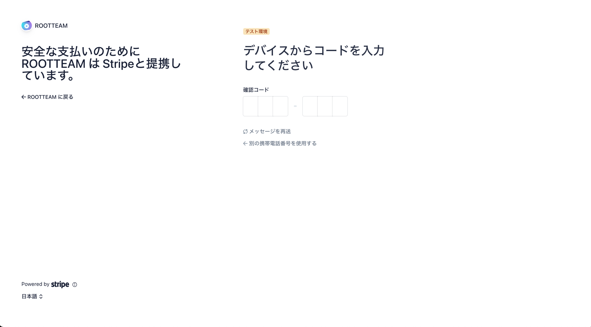 電話番号を入力し、受信したコードを入力してください