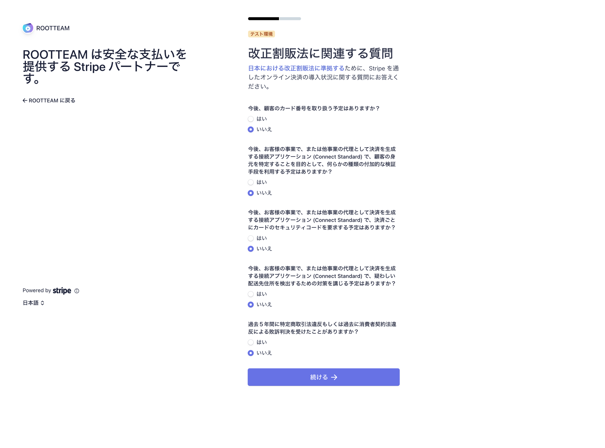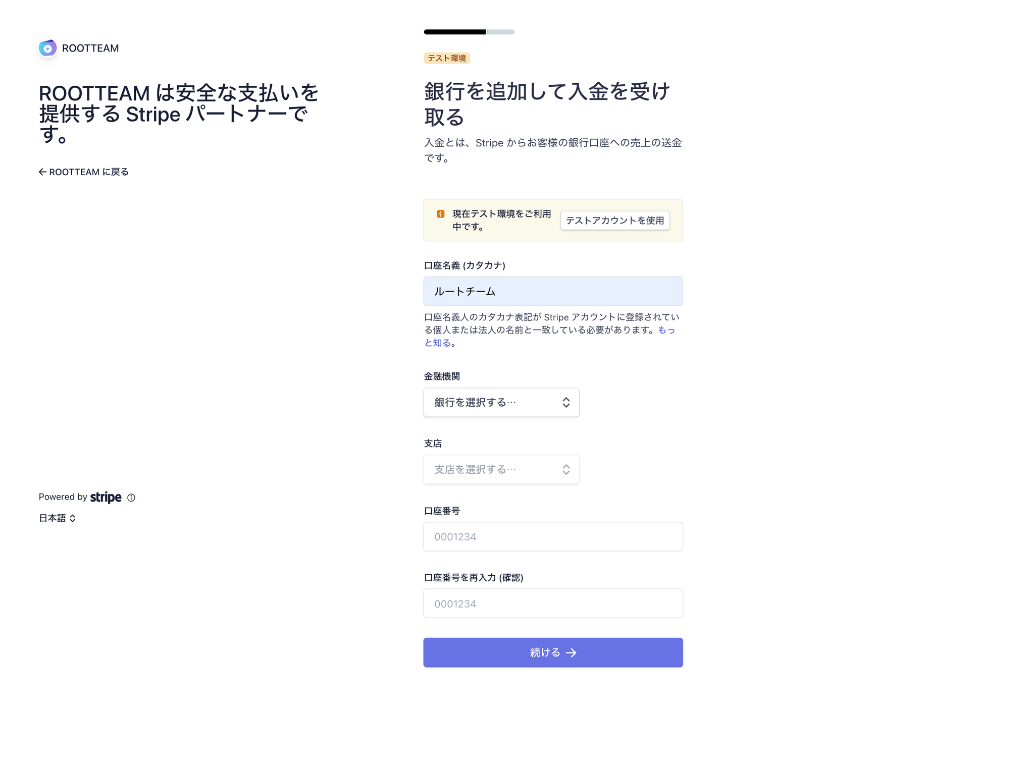 Stripeで下記のURLに遷移してください
