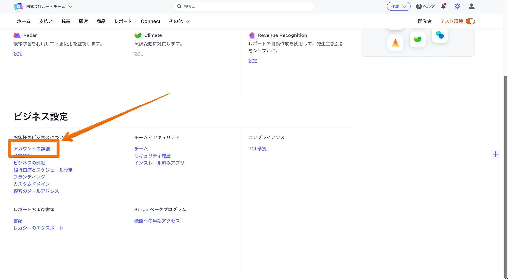 その場合は、設定からStripe接続を選択し、既存のアカウント情報を入力してください。