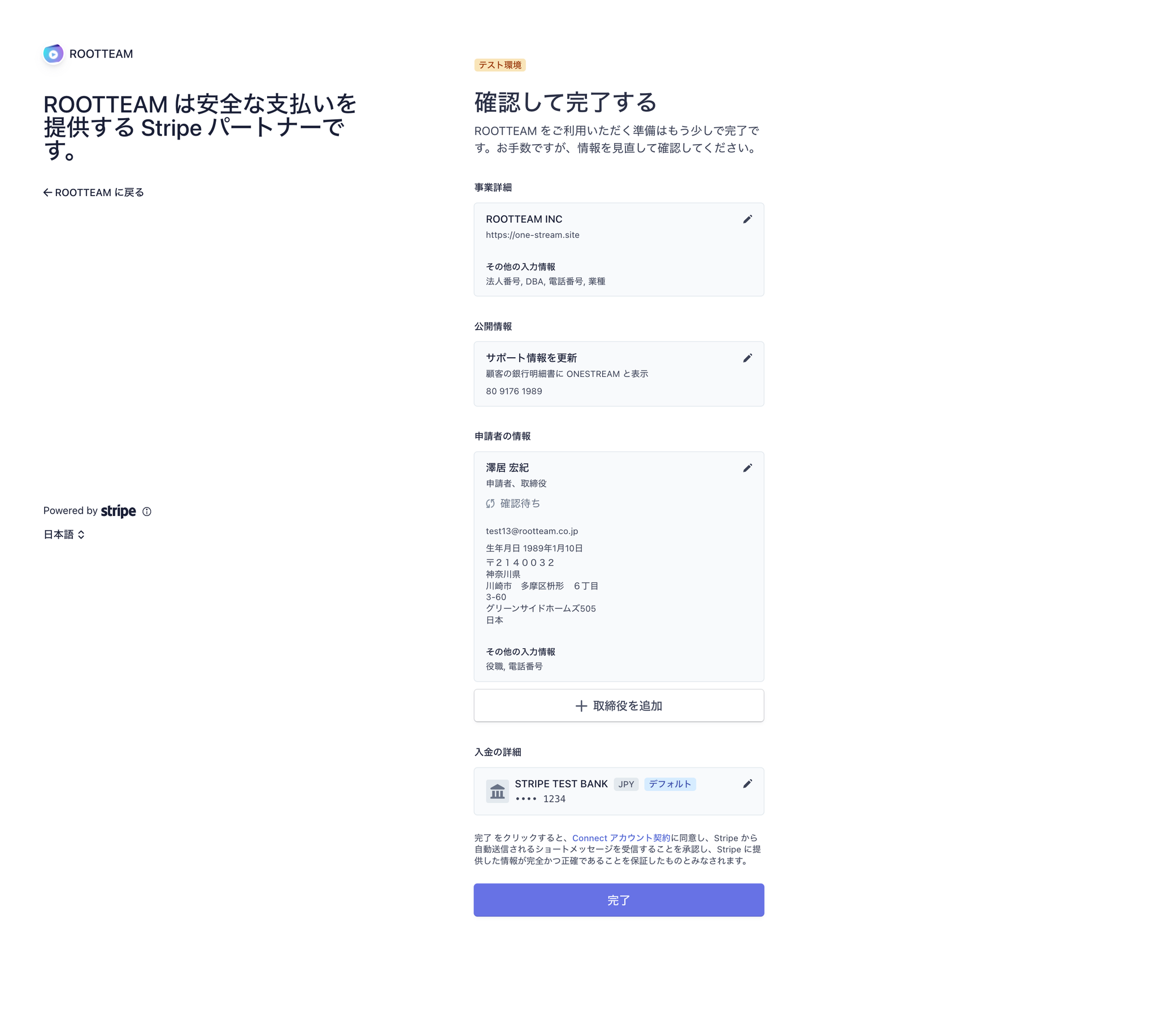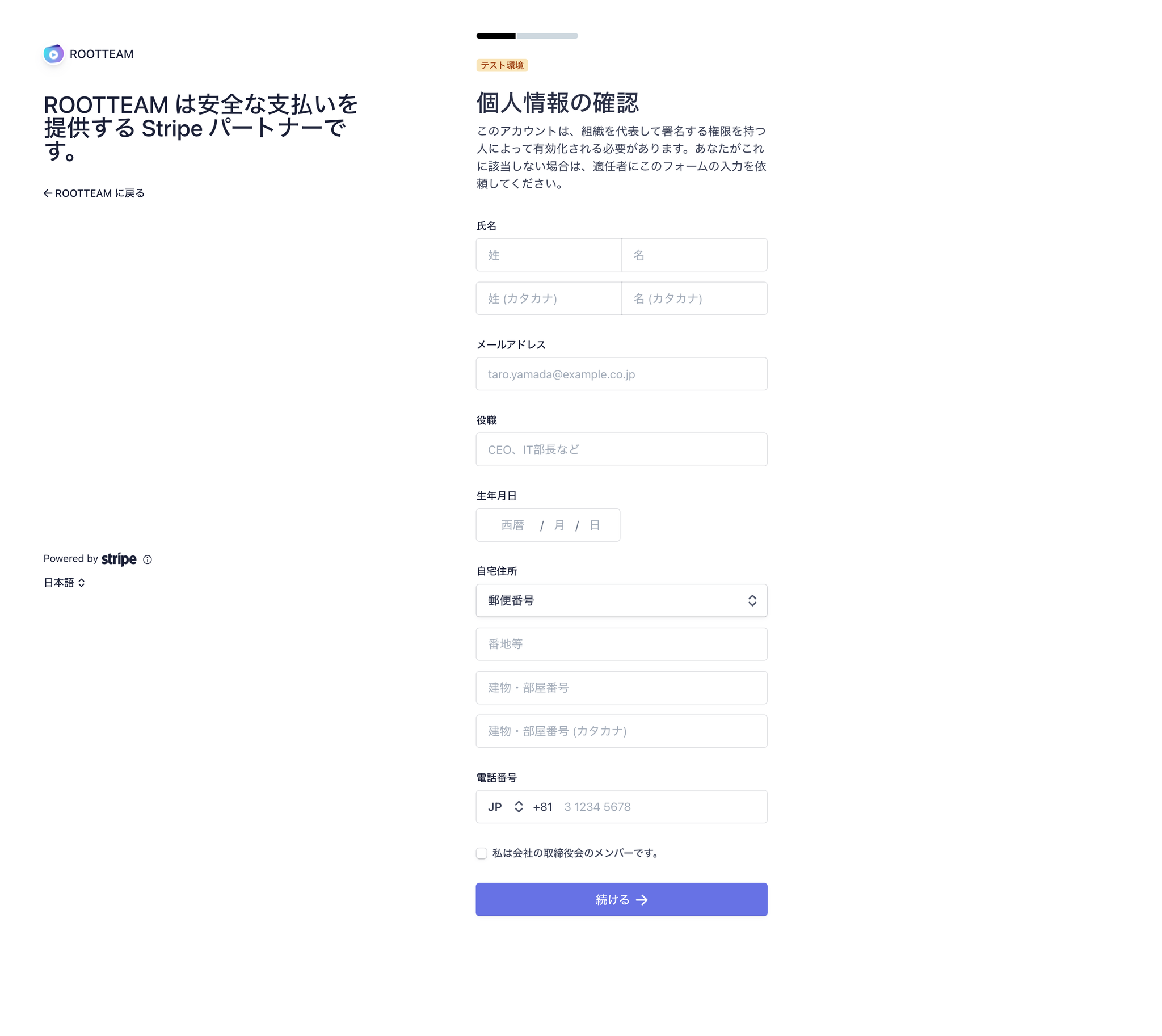 Stripeを利用する個人(代表的な人物)の情報を入力してください