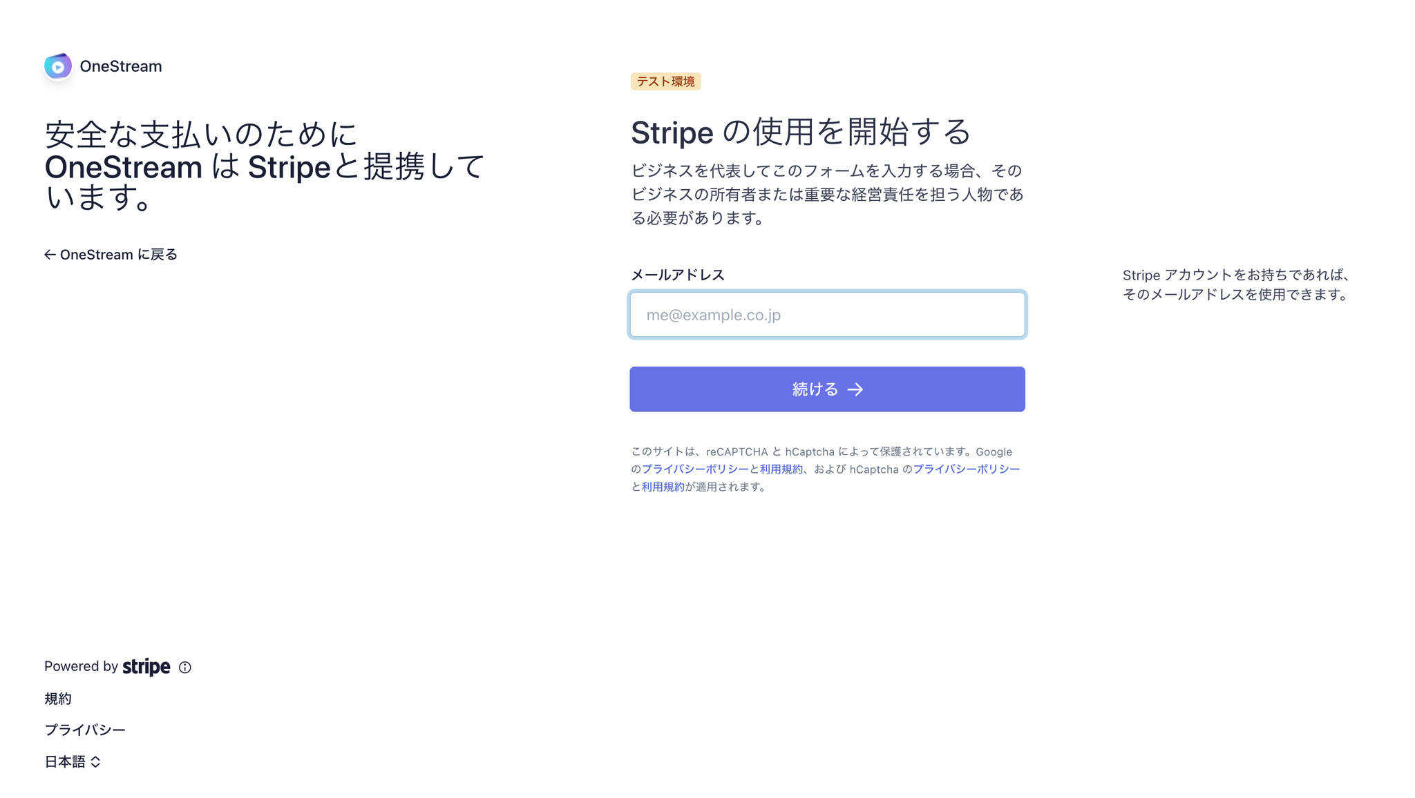 OneStreamでは、安全にオンライン決済を行うためにStripeというサービスを使用します。