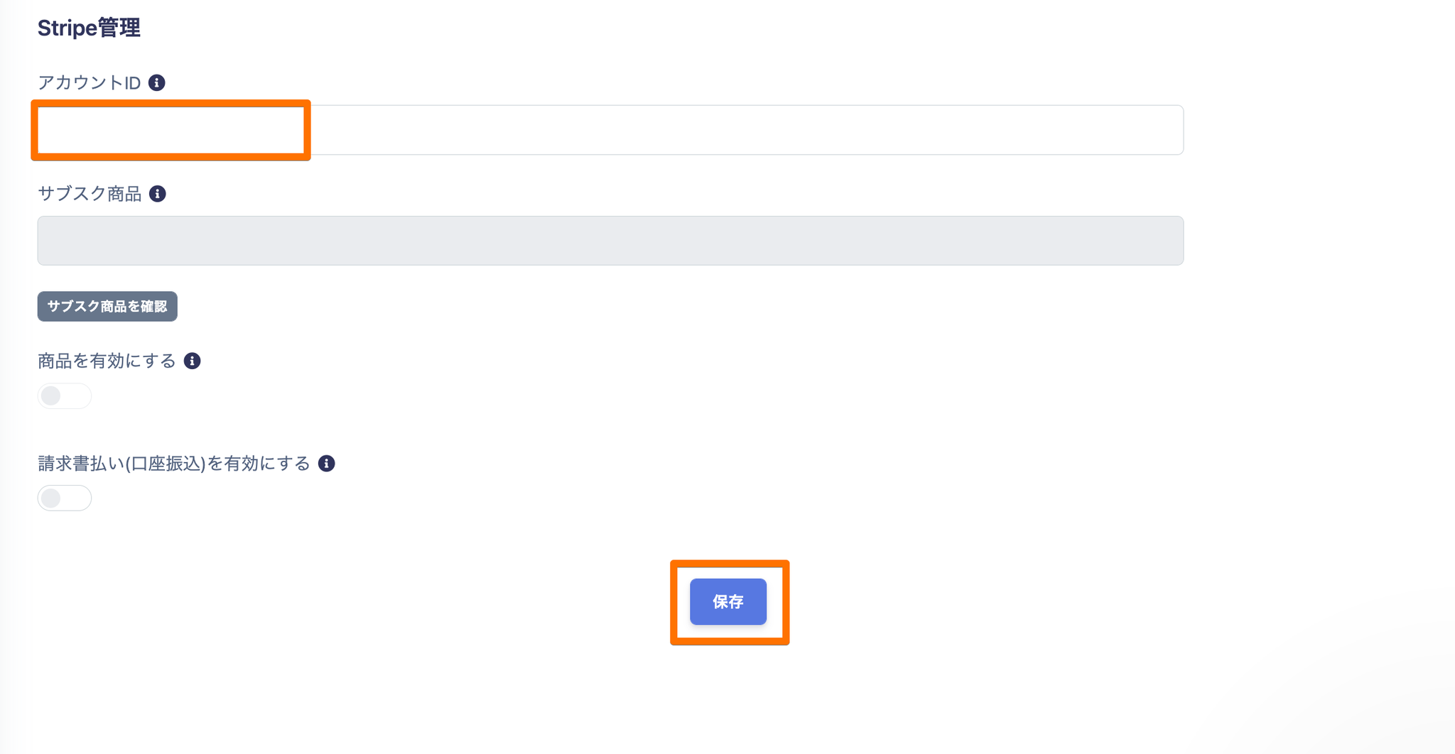 Stripe管理の、アカウントIDにコピーしたものを貼り付けて、保存してください