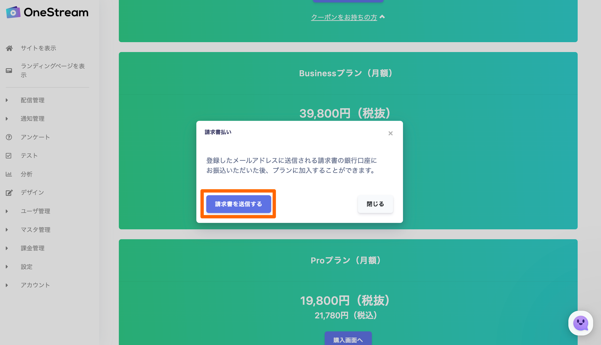 ご登録のメールアドレスに請求書が自動発行されます。