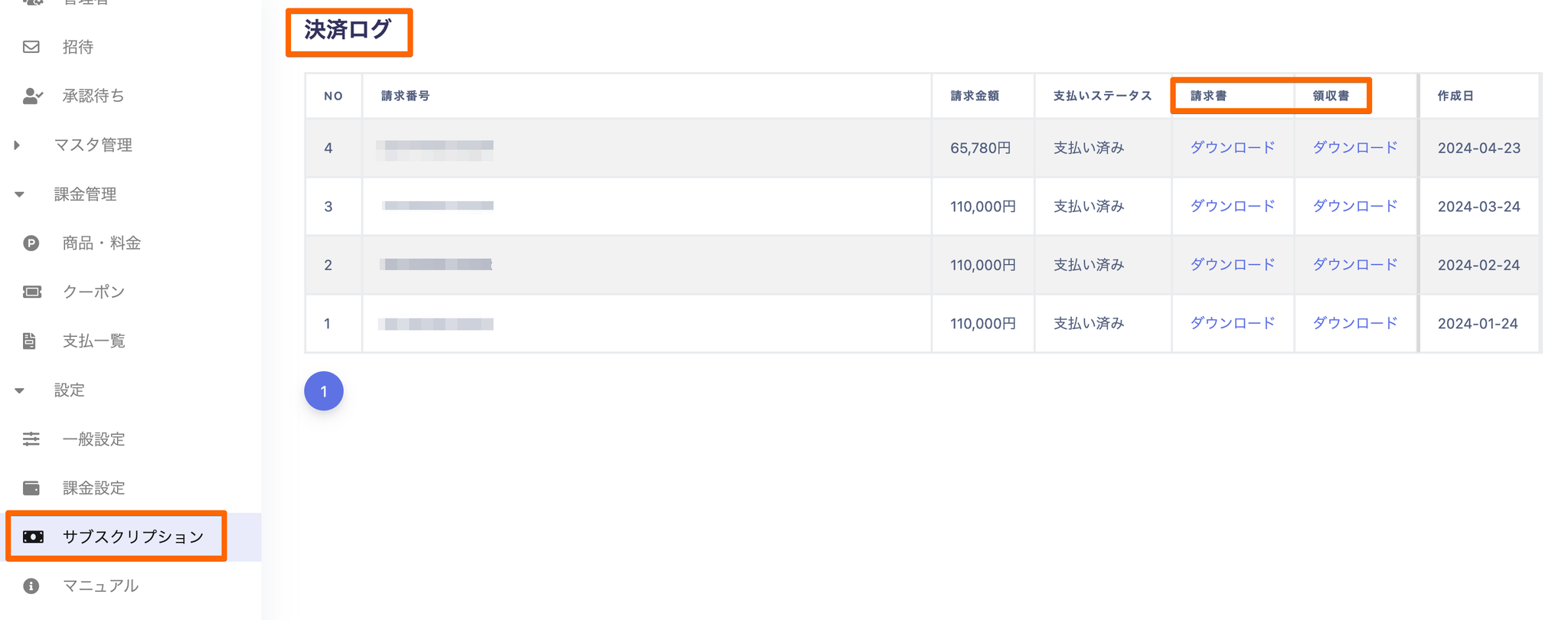 設定→サブスクリプション→決済ログよりダウンロードください