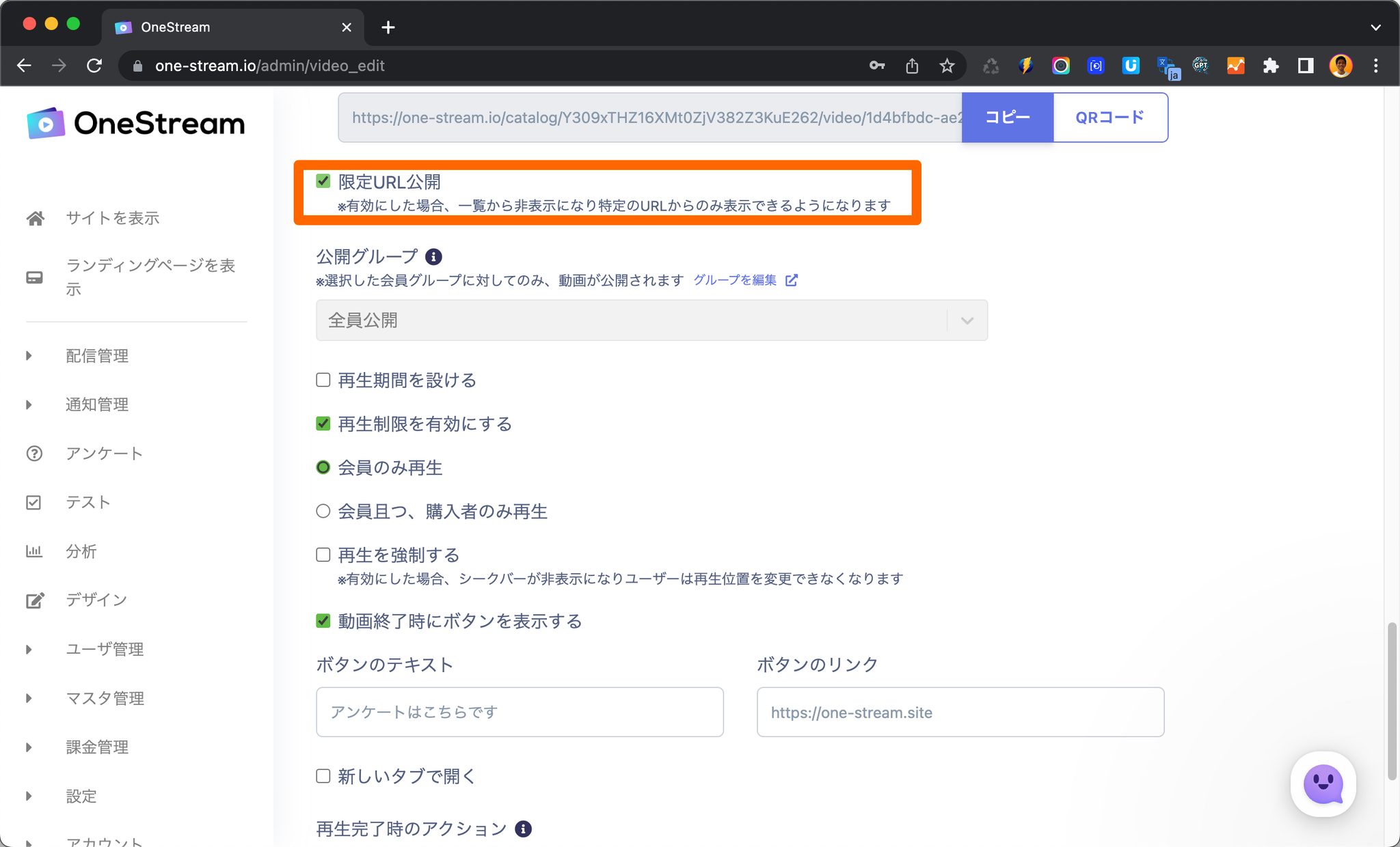 有効にした場合、一覧から非表示になり特定のURLからのみ表示できるようになります。