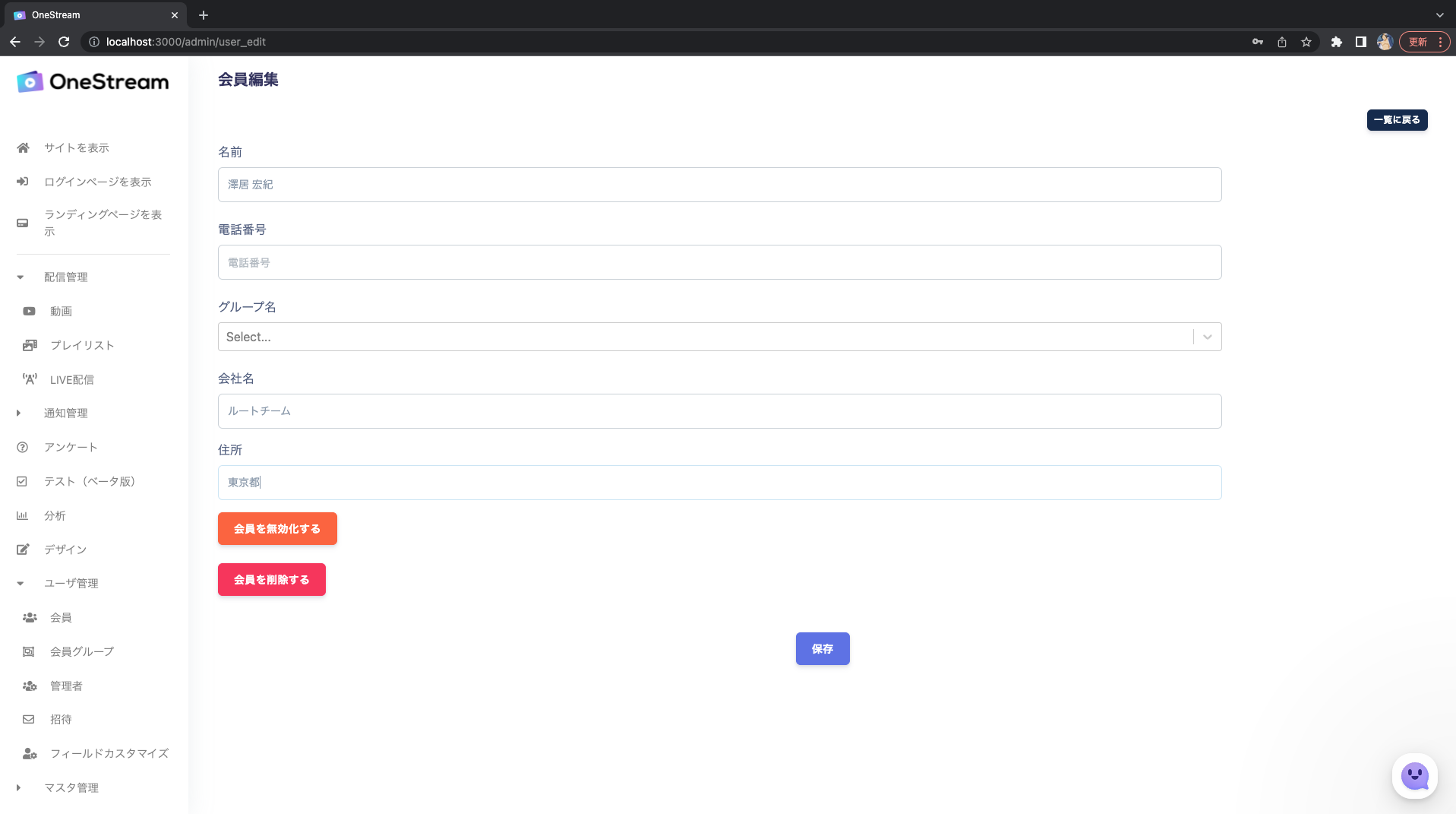 •OneStreamのメニューより【ユーザ管理】⇒【会員】を選択してください