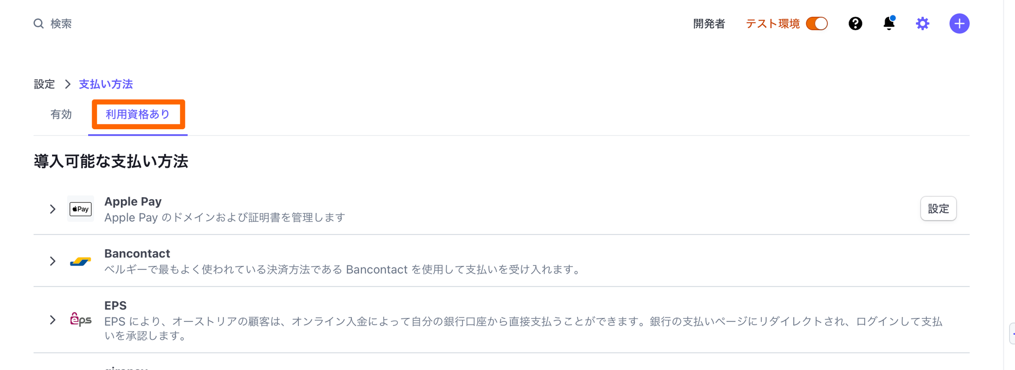 この操作により、StripeでのJCBカードの支払い受付が有効化されます。
