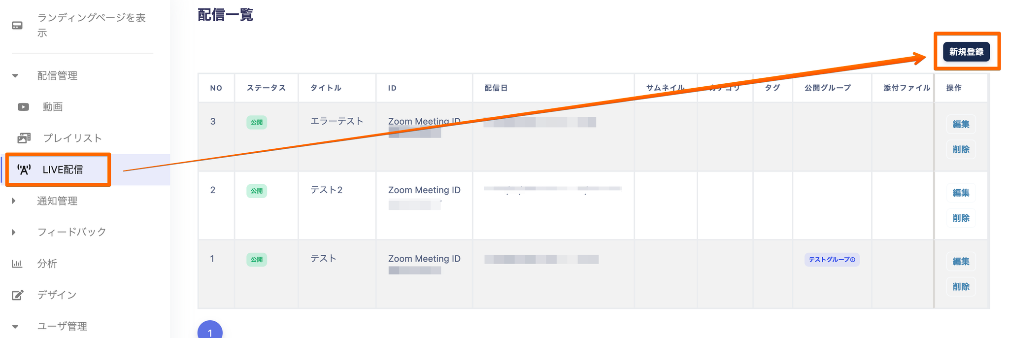 •公開グループ:会員グループ一覧で設定した会員グループを選択してください 選択した会員グループに対してのみ、LIVEが公開されます