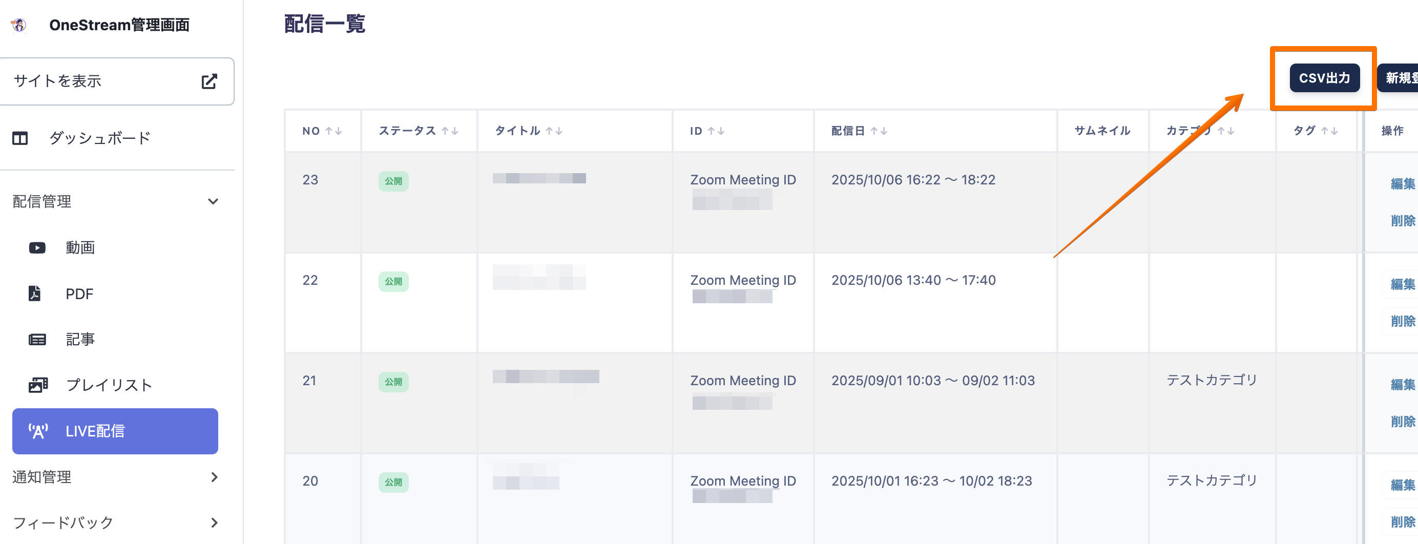 CSV出力を利用することで、配信内容の一覧を外部で管理したり、確認作業をスムーズに行うことができます。