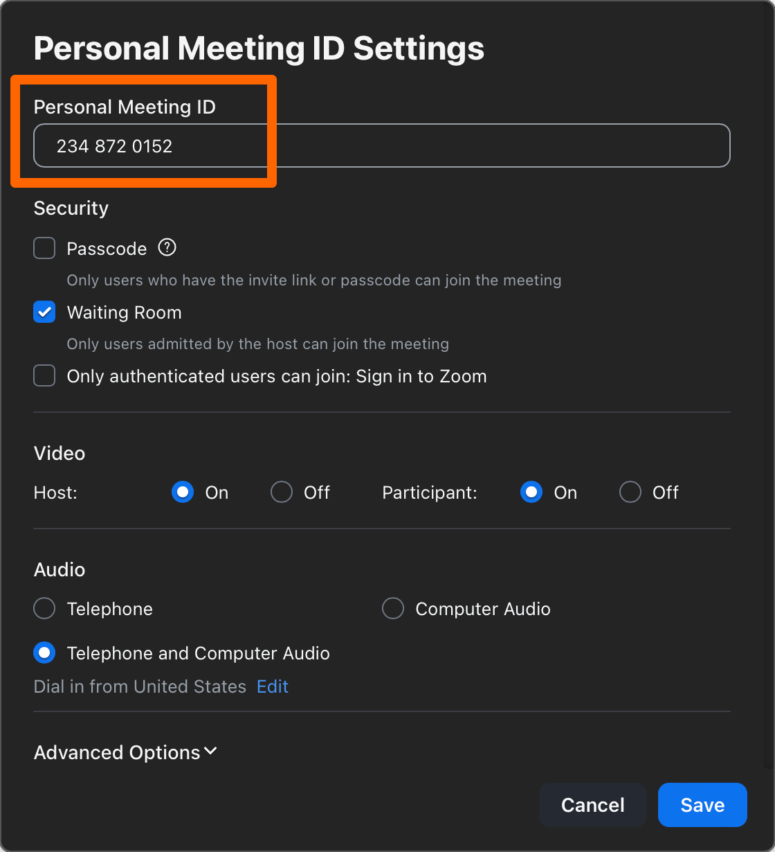 ◦If it's Zoom, it's the Personal Meeting ID below.