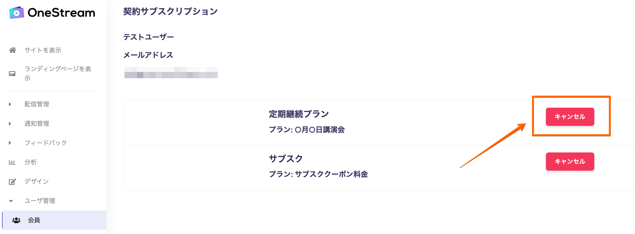 •退会処理: 該当の会員のサブスクはキャンセルされ、同時に会員情報も削除されます。