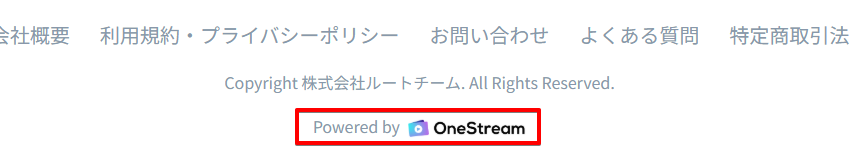 サイト最下部に表示される 「Powered by OneStream」ロゴ は、ビジネスプラン以上 で非表示にすることが可能です。
