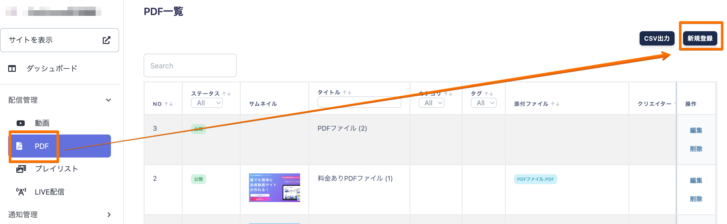 管理画面 > 配信管理 > PDF > 新規登録
