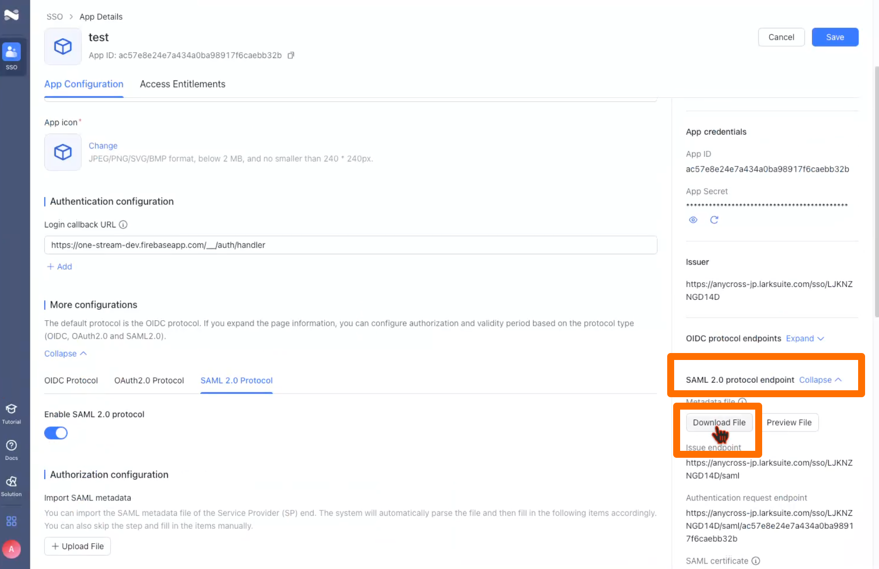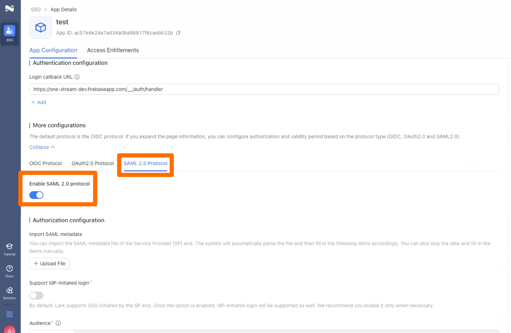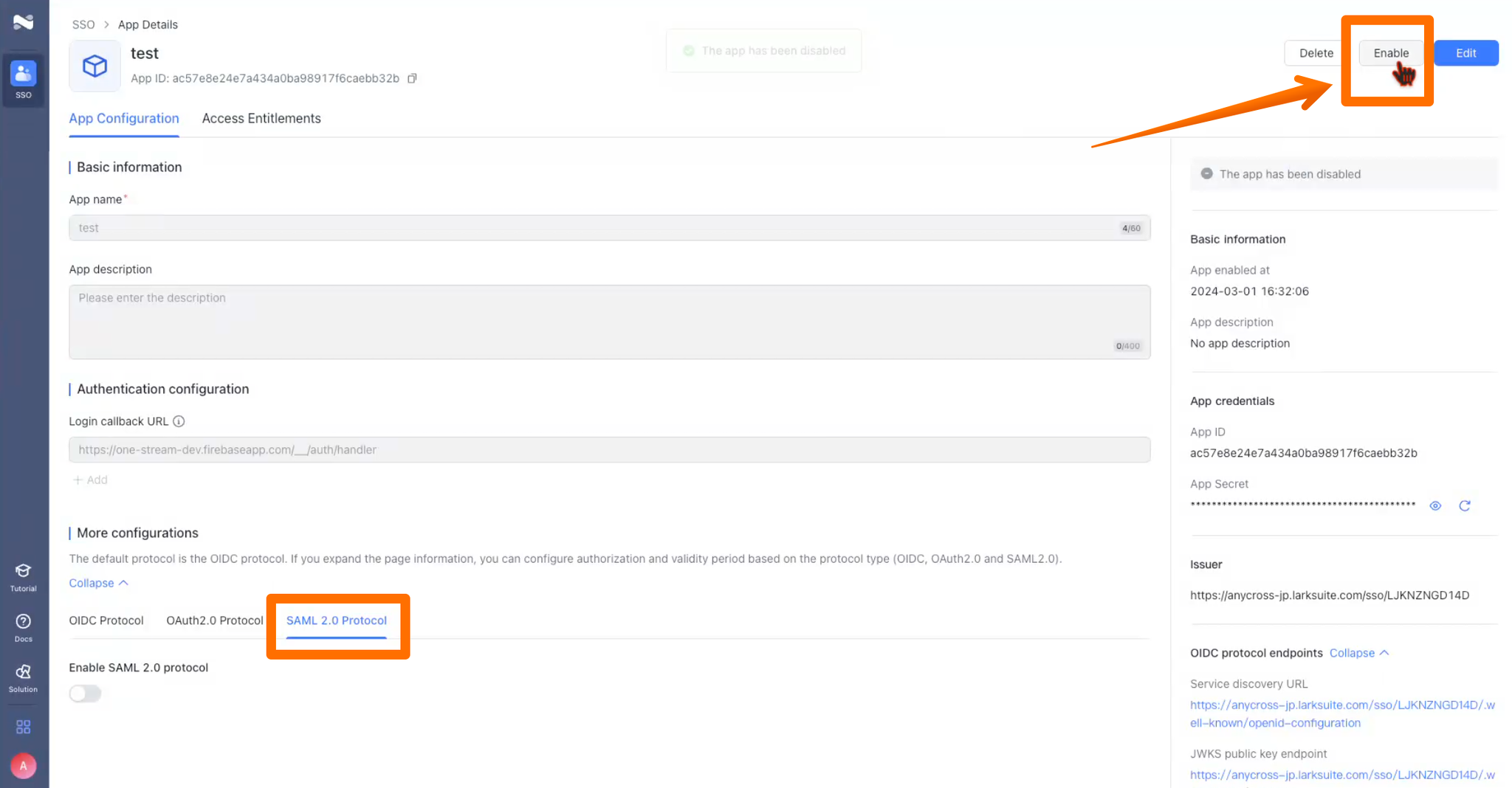 Larkよりエンタープライズアプリケーションの作成をお願いいたします。