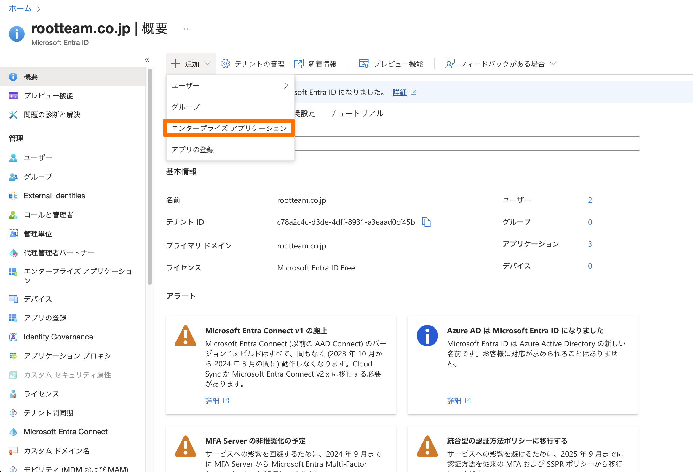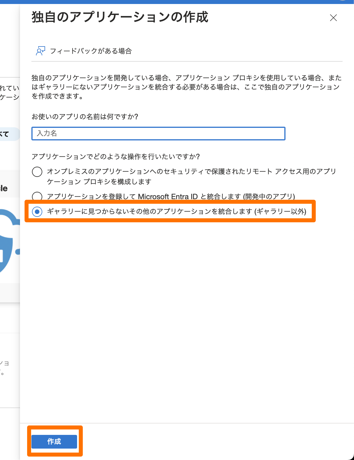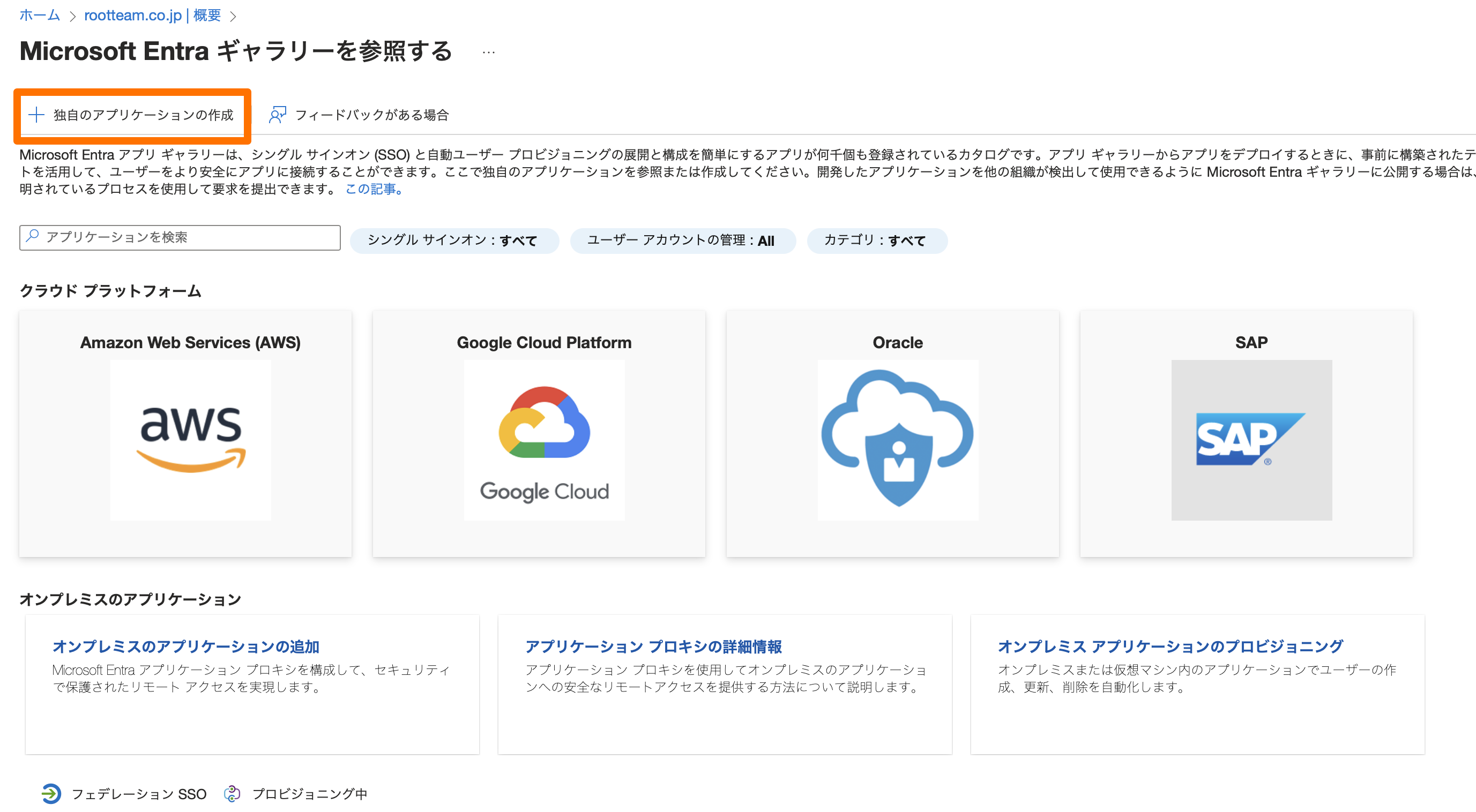 MS Entra IDよりエンタープライズアプリケーションの作成をお願いいたします。