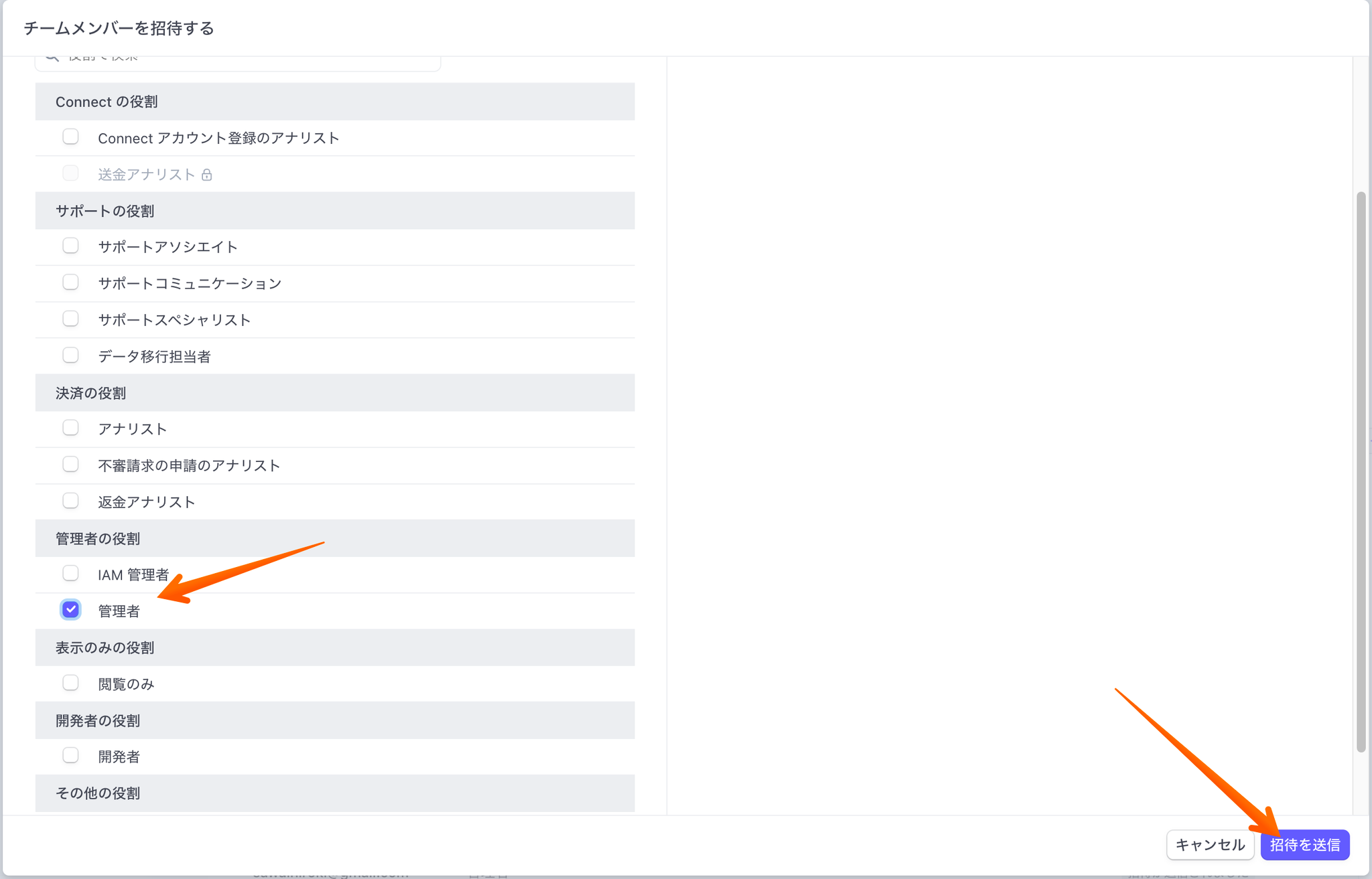 stripeの管理者を招待するdashboard.stripe.comhttps://dashboard.stripe.com/settings/teamstripeにログインし、上記のページにアクセスしてください上記いずれかの認証方法を行なって操作を完了してください